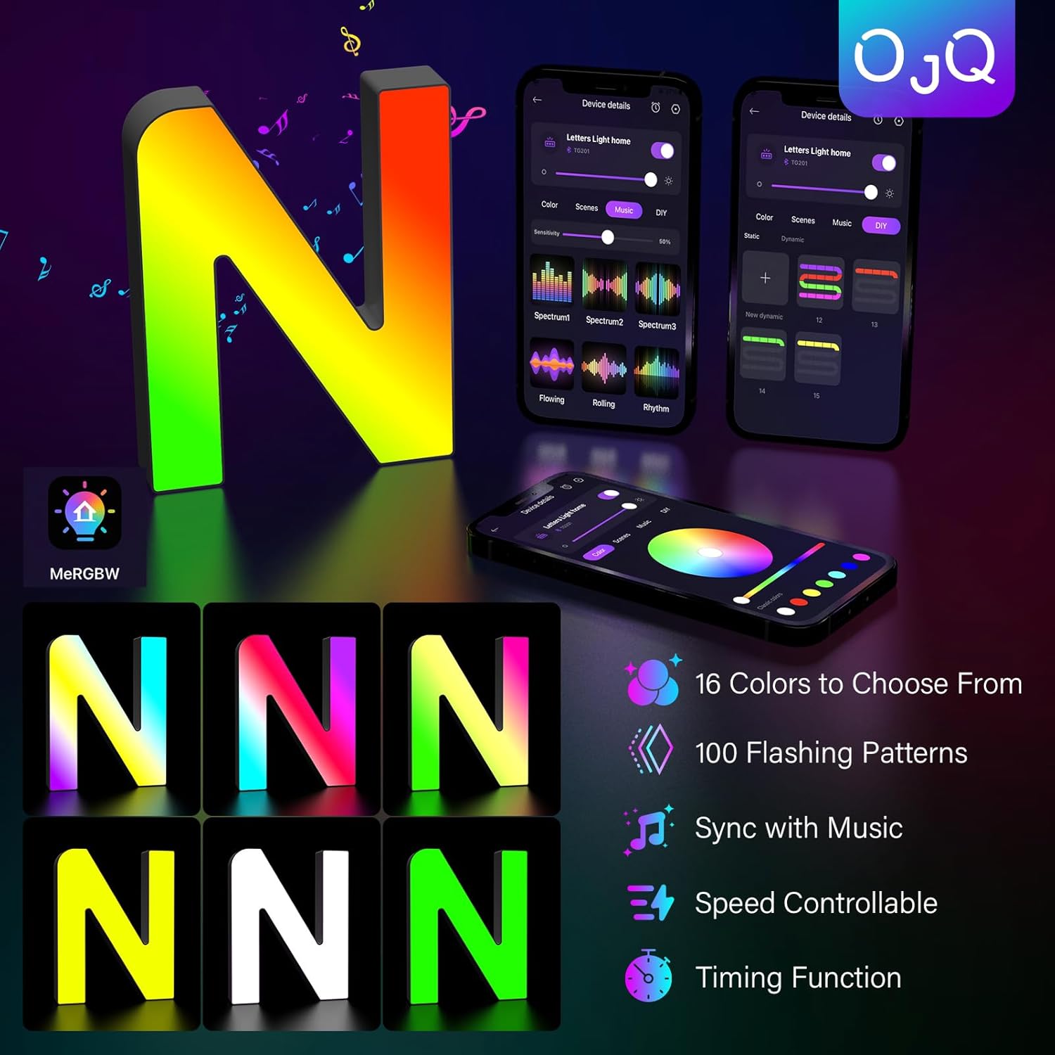 OJQ Light Up Letters LED Letter - Marquee Letters Room Decor Alphabet Letter Music Sync Color Change Colorful - Christmas Birthday Gifts for Girl - Teen Girls Gifts Party Home Wall Decor