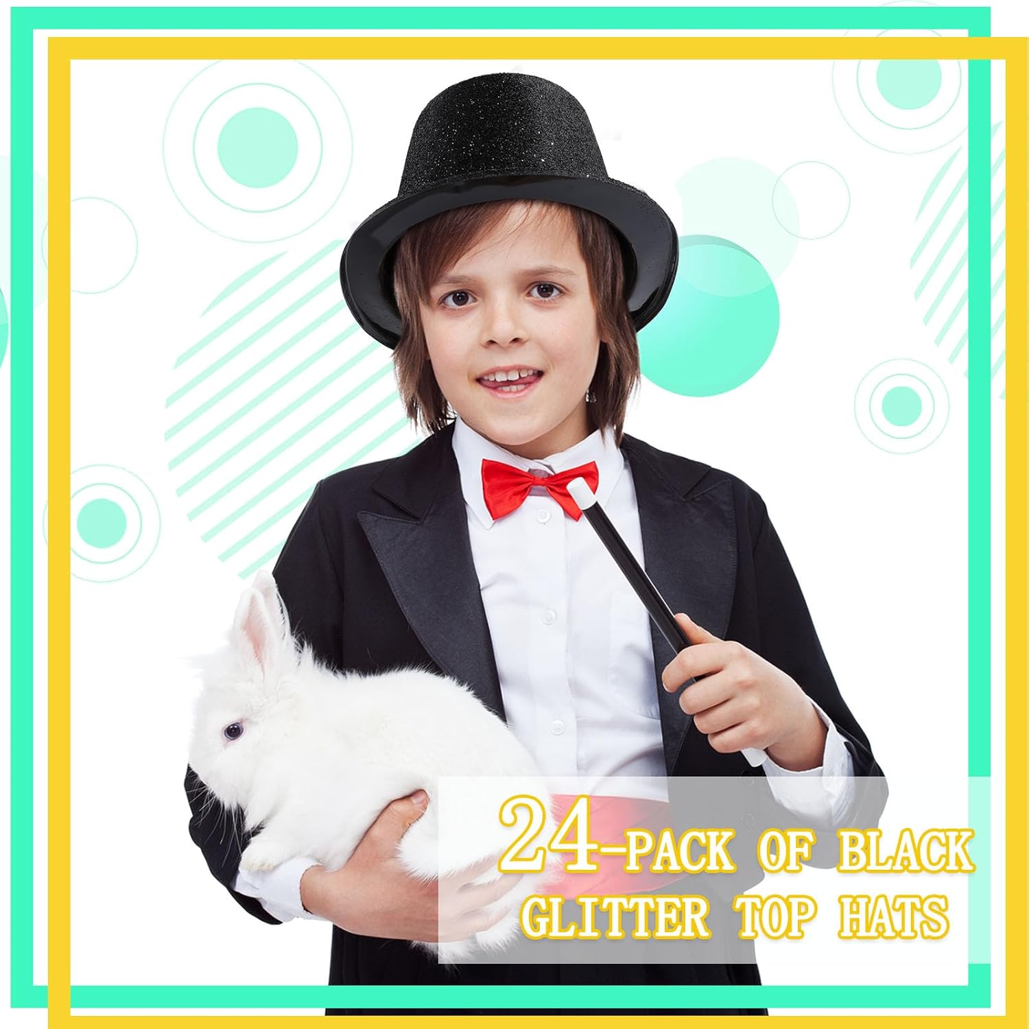 • Generous Package Deal: each package includes 24 glittering black top hats; This makes it ideal for group events like parties, gatherings or stage shows; You can share the fun with partners and family