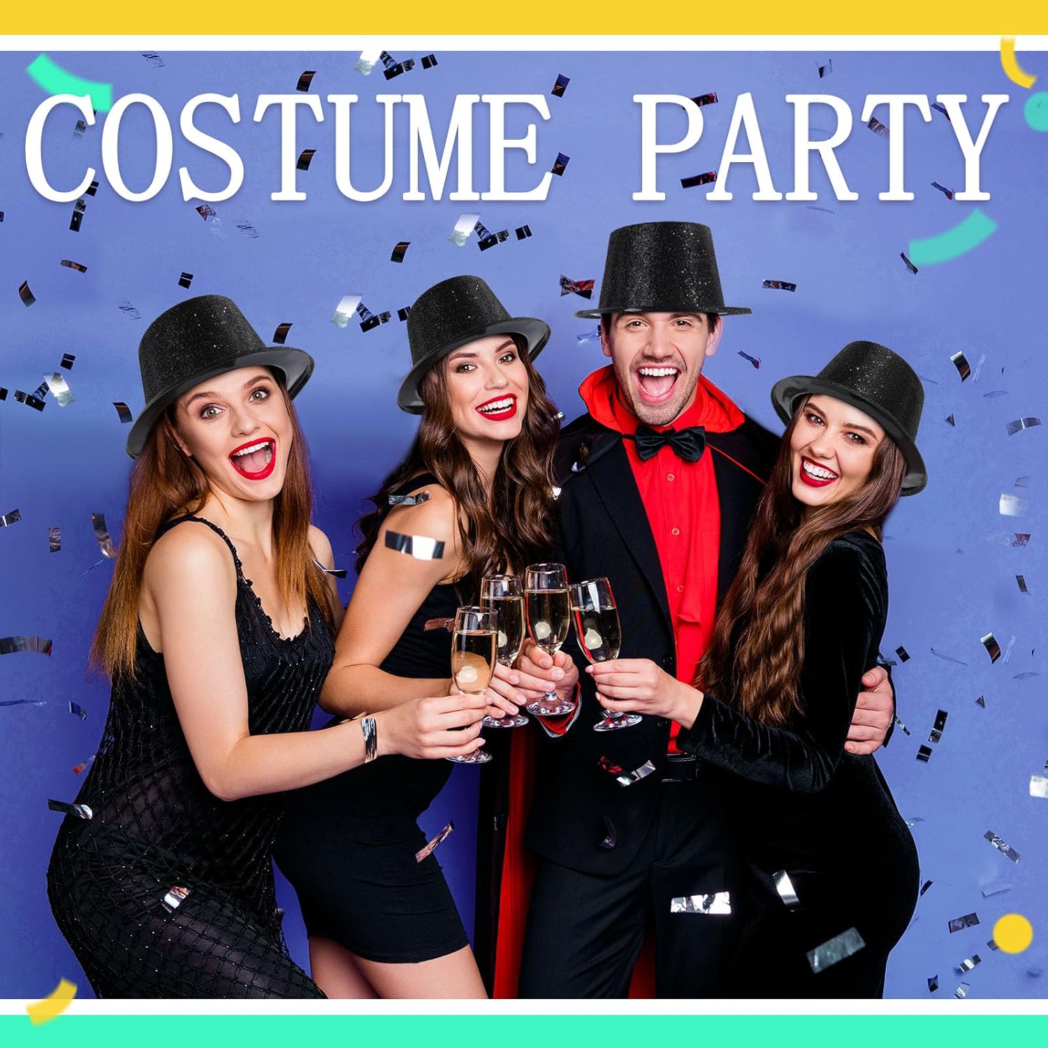 • Sophisticated Glitter Style: these Halloween top hat costume are designed with a dazzling glitter finish that complements any outfit; Whether teamed with tops, skirts, suits, etc., they add a charming touch to your ensemble, ideal for 1920s parties, Halloween party, wedding parties, stage shows and more