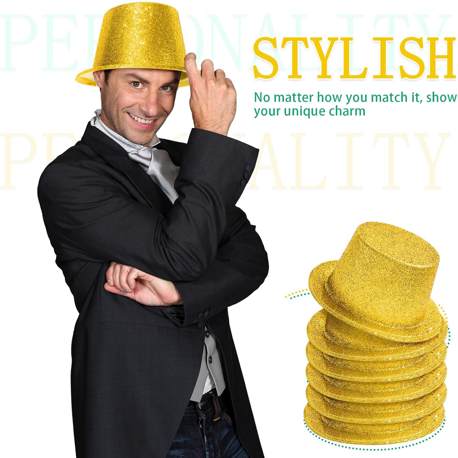 • Generous Package Deal: each package includes 24 glittering gold top hats; This makes it ideal for group events like parties, gatherings or stage shows; You can share the fun with partners and family