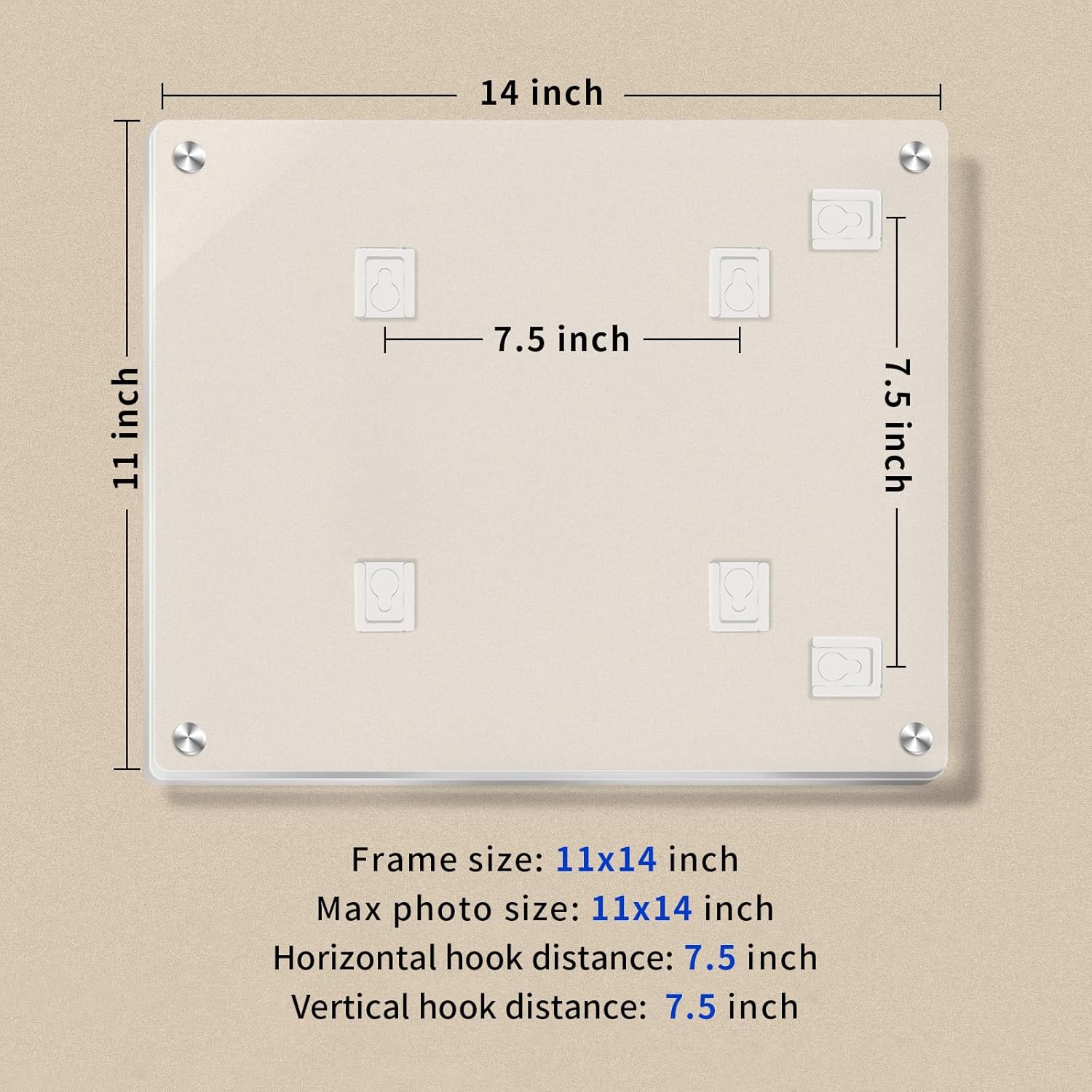 11X14 Acrylic Floating Picture Frame for Wall Mount, Clear Magnetic Photo Frame for Kids Artwork,Certificates Documents Frames for Family,Office,Wedding