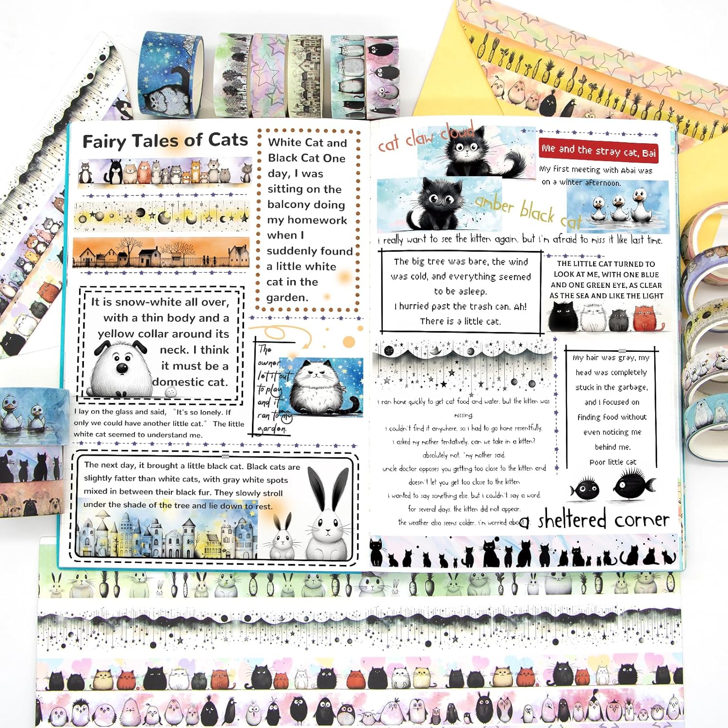 • Pet Washi Tape Set - Contains 24 rolls of different patterns of washi tape, cute black cats, dogs, ducks, chickens, rabbits, as well as chubby polar bears, bears, penguins, etc. Kids and your friends can't refuse this adorable animals washi tape stickers.