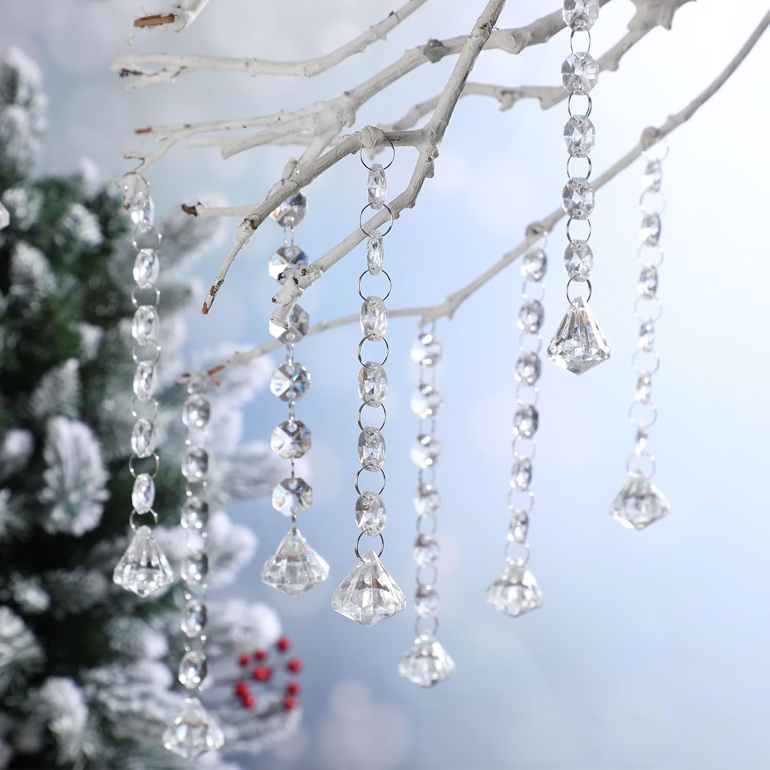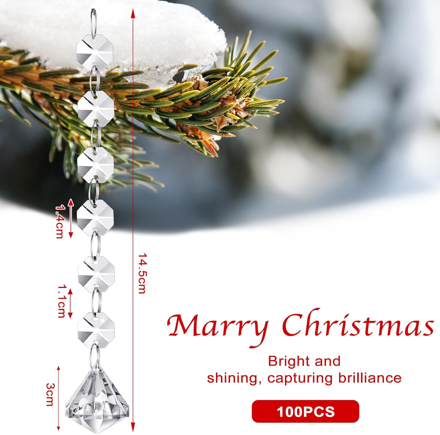Nuenen 100 Pcs Acrylic Hanging Crystals for Centerpieces Chandelier Clear Crystal Garland Strands Ornament Acrylic Clear Beads Prisms Pendant for Christmas Tree Window Home Decoration(Diamond)