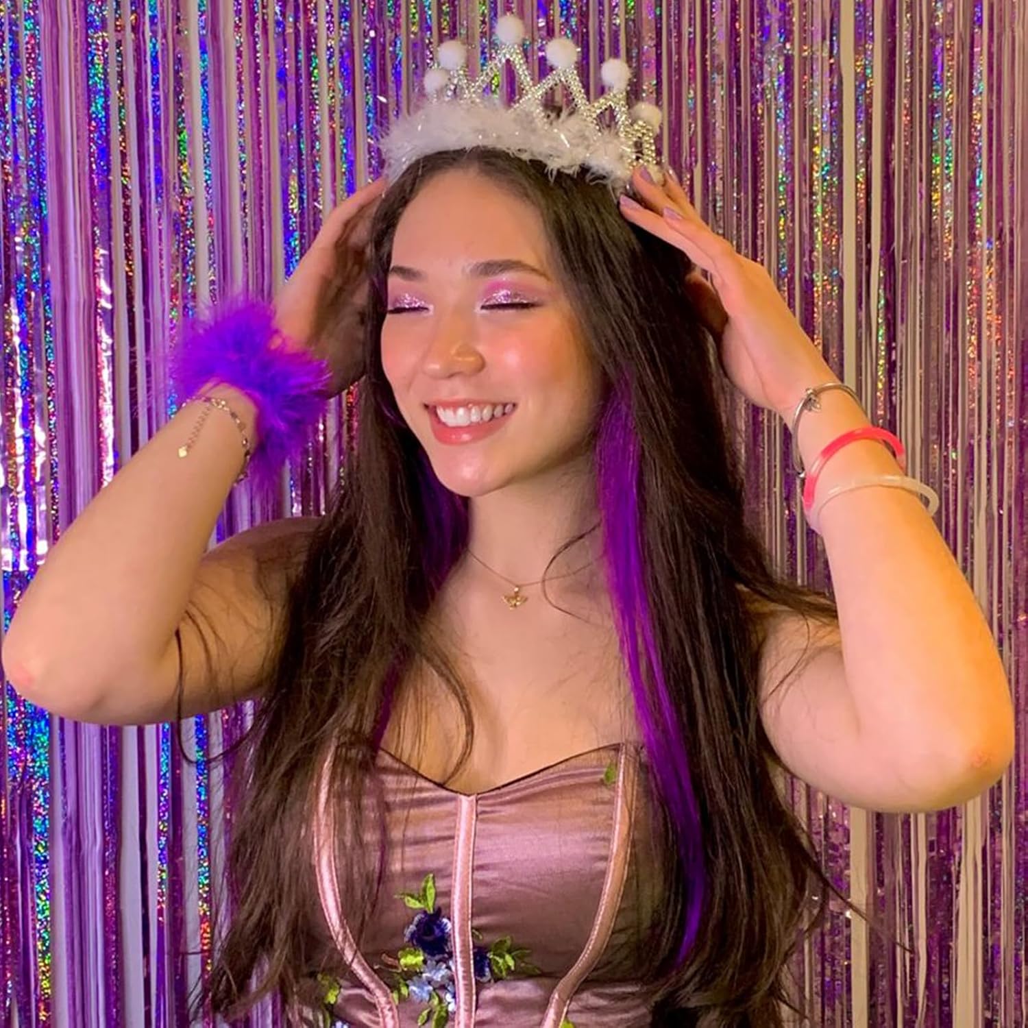 • 🎉SAFE & SHINY MATERIAL- This Glitter purple tinsel backdrop is made of high-quality shiny tinsel, non-toxic, odorless, and non-fading, safe for families with children and pets. Just transform your home into a shining streamers happy birthday decorations, and enjoy the party.