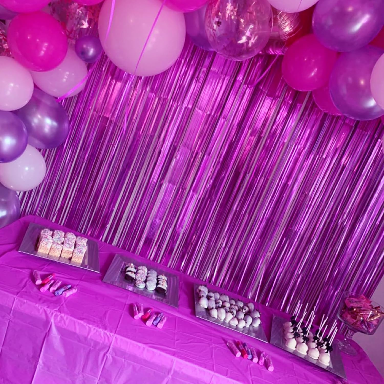 • 🎉SAFE & SHINY MATERIAL- This hot pink tinsel backdrop is made of high-quality shiny tinsel, non-toxic, odorless, and non-fading, safe for families with children and pets. Just transform your home into a shining streamers happy birthday decorations, and enjoy the party.