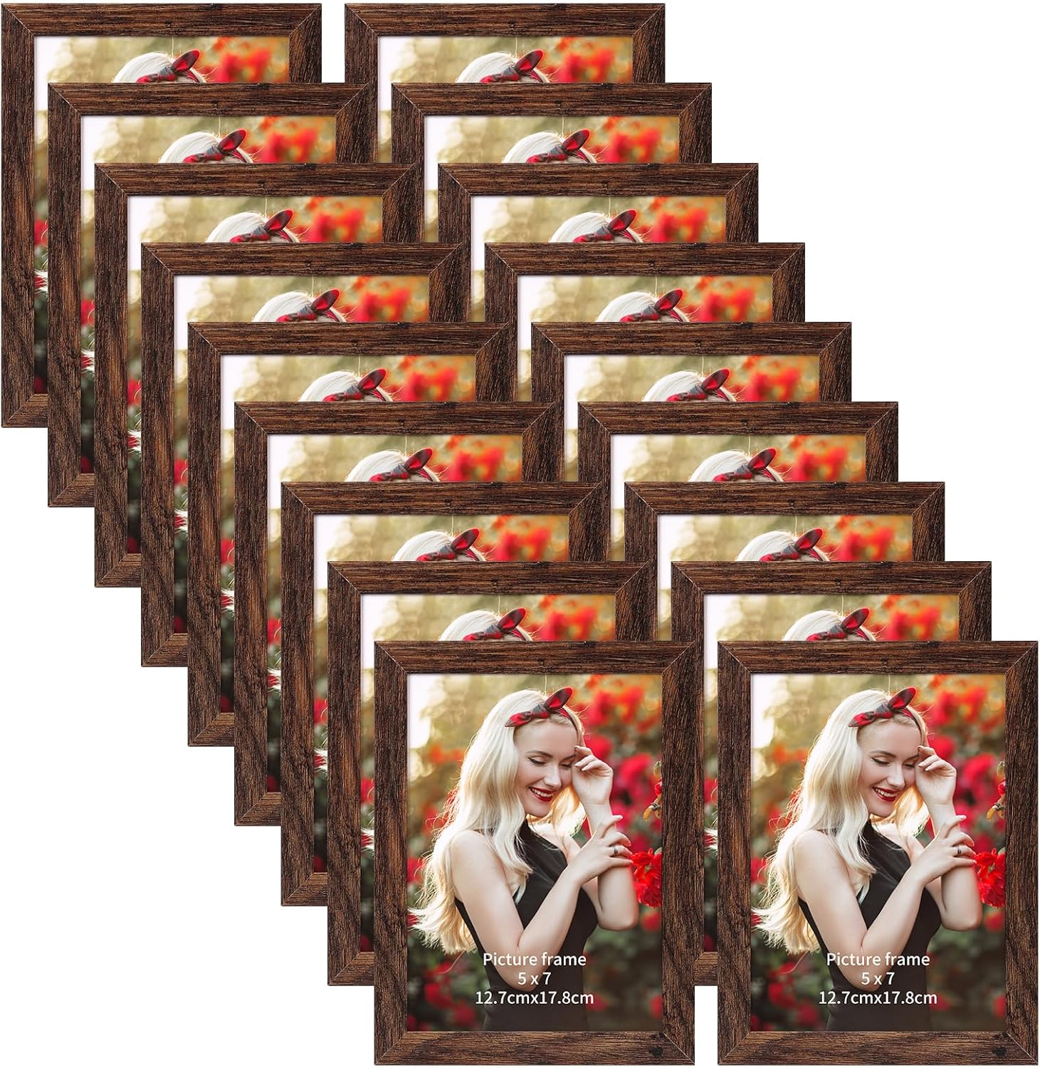 PETAFLOP Wooden Bulk 5x7 Picture Frame Set of 18, Rustic Brown Photo Frames Fits 5 by 7 for Wall or Tabletop Display