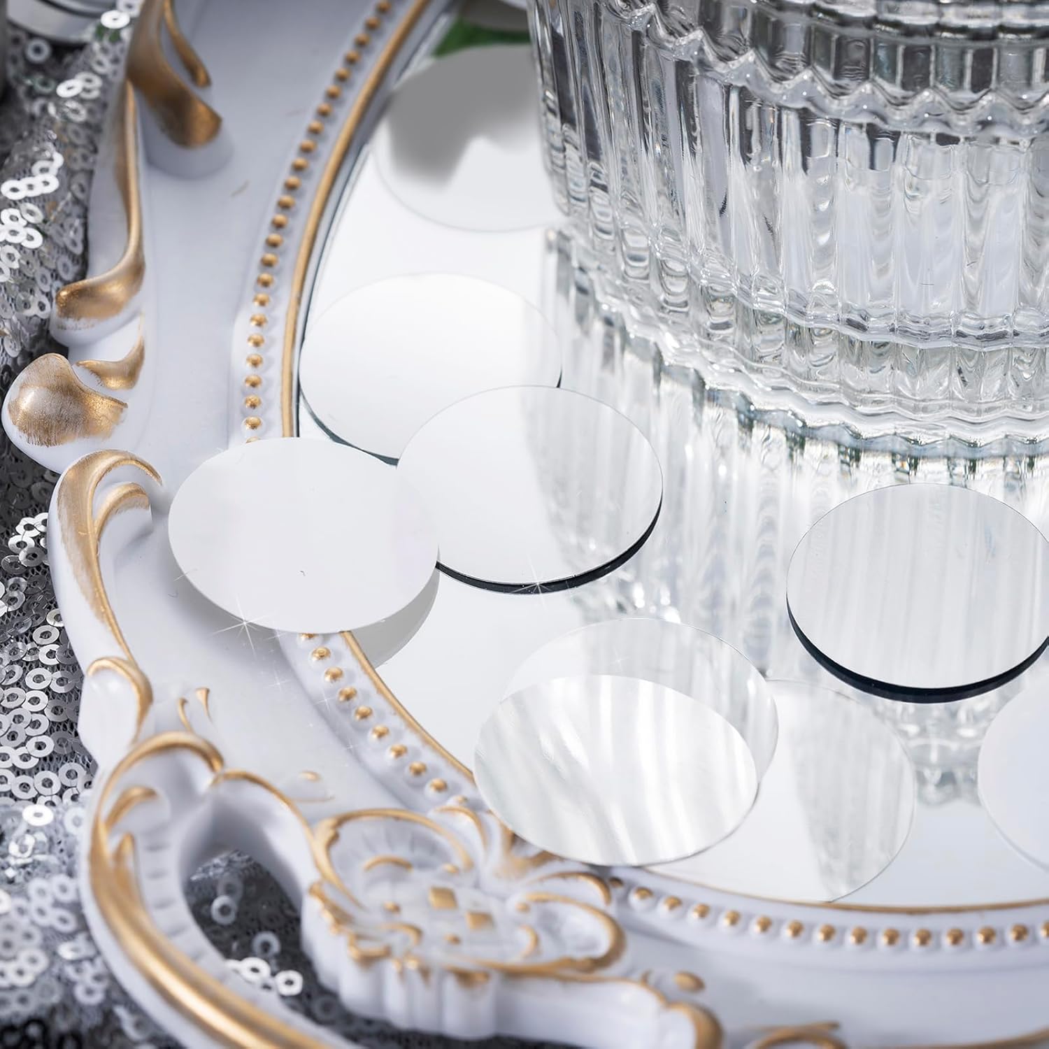 Silver Sparkle Confetti 1.2 Inch - 300 Metallic Flakes for Wedding, Birthday Party, Table Scatter