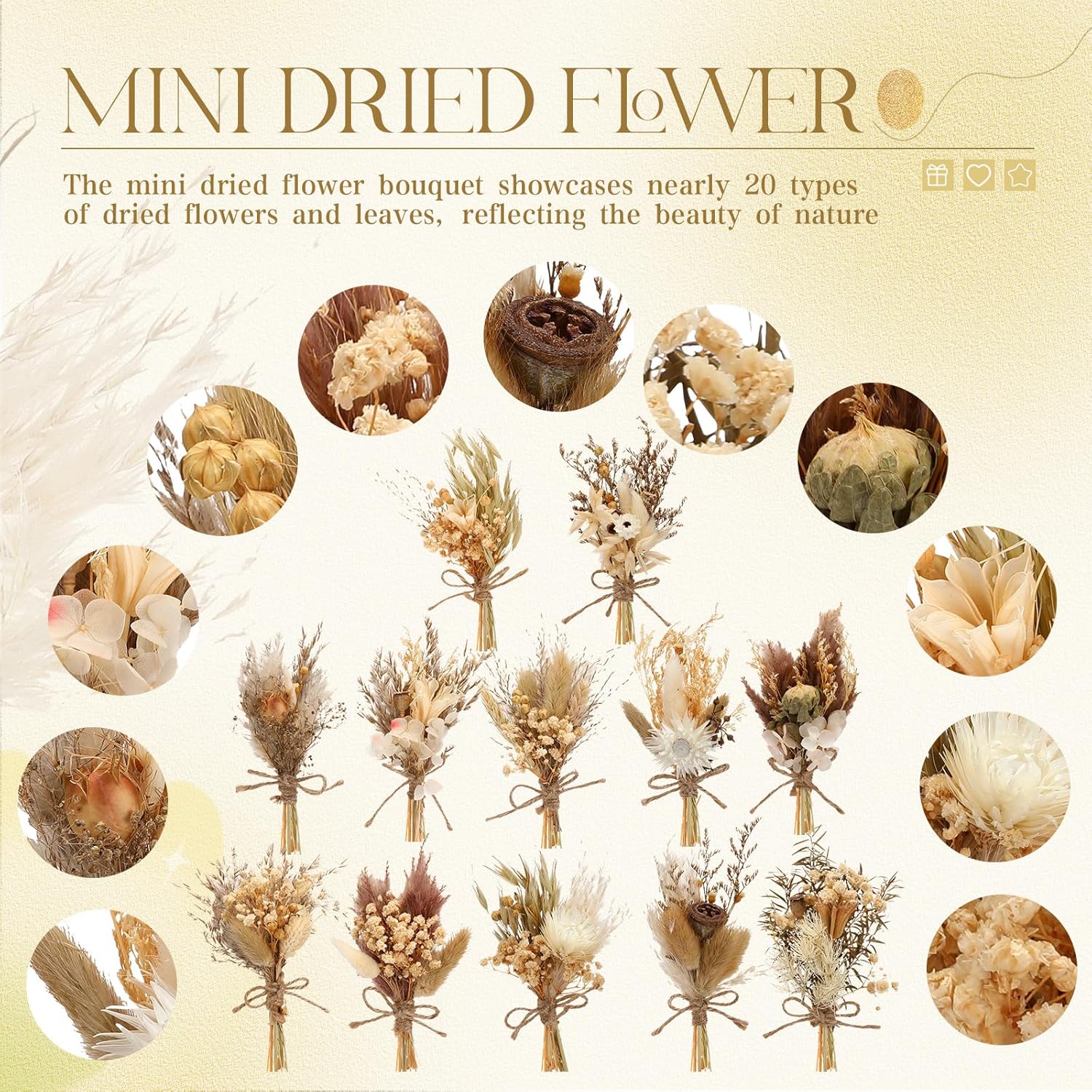 Layhit 12 Pack Boho Dried Flower Bouquet Mini Wedding Handmade Dry Flowers Decor for Vase Crafts DIY Photo Boutonniere for Men Floral Plant for Bridesmaid Gift Birthday Decor