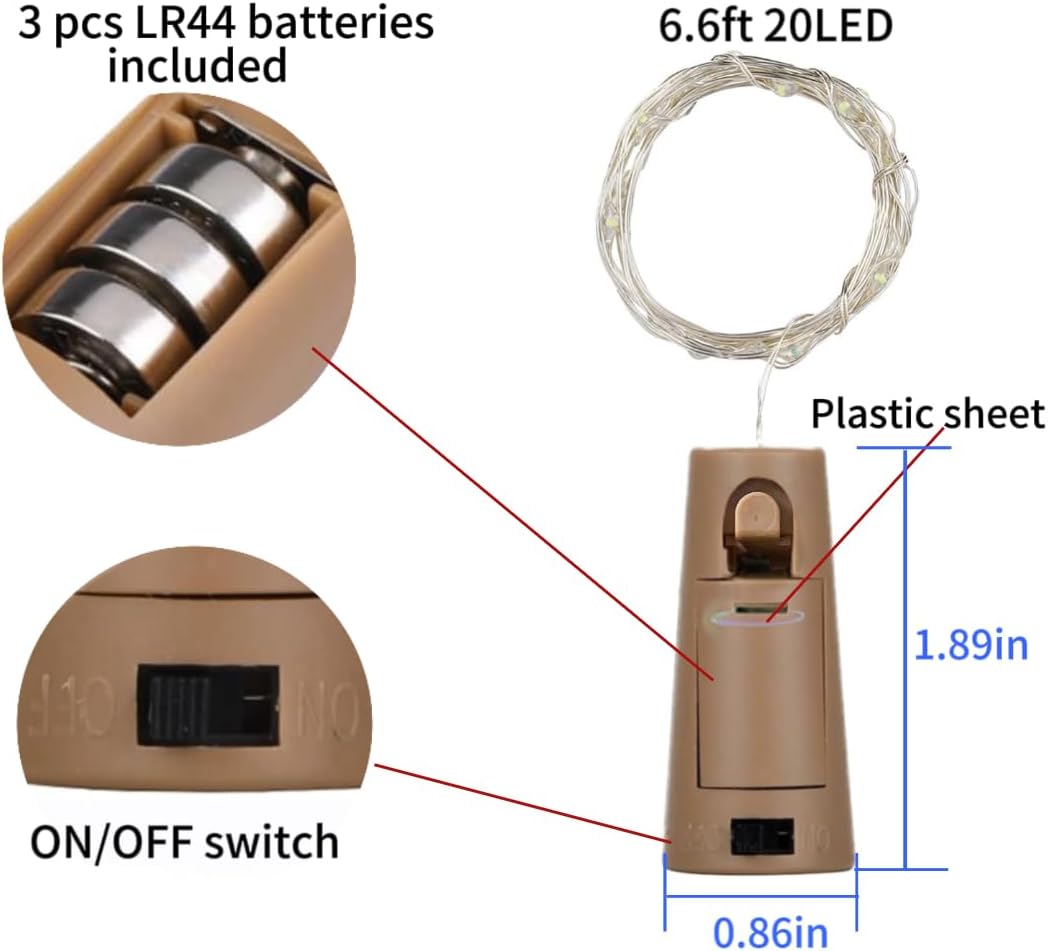 • Enjoy DIY Fun: 4 pcs cork lights each made of premium silver copper wire is anti-tangle and will not easily break off, 6.6 feet which is long enough for any decoration and can be easily designed to any DIY shape you like