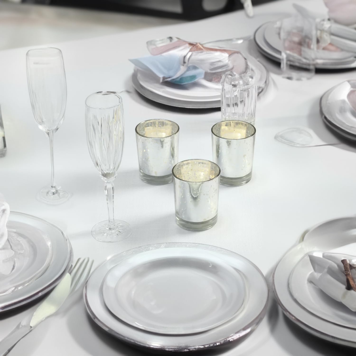 WGV Silver Speckled Tea Light Votive Candle Holder 2.2x2.75, Small Tiny Utility Cylinder Mercury Glass Vase, Home Accent Decor, 6 Pieces