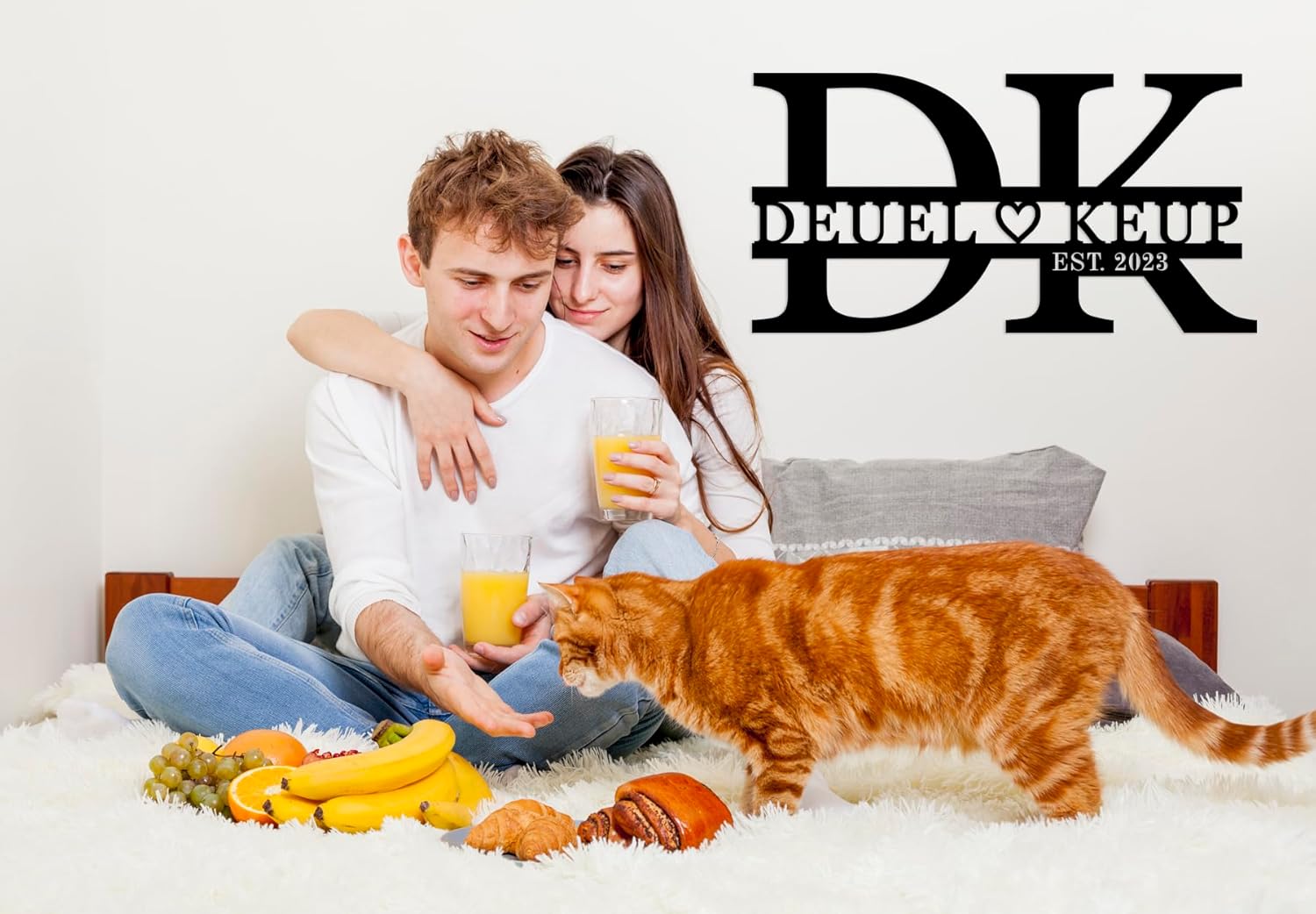 TNATUR Personalized Metal Sign - Custom Last Name Monogram - Split Letter - Family Door Hanger - Outdoor Wedding Gift - 12inch x 5.78inch Steel Sign