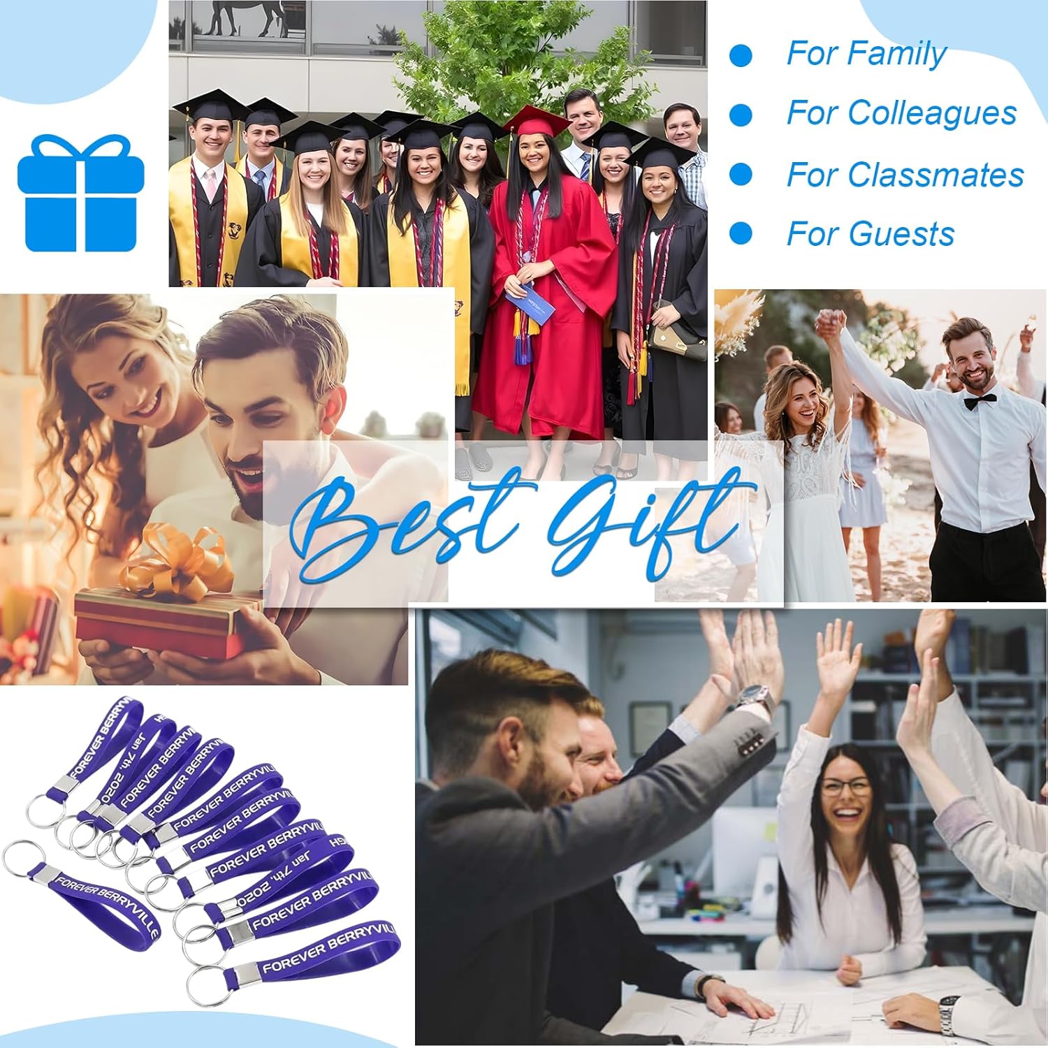 • Wide range of uses:Our custom silicone keychain is a great choice for your business promotion. Perfect for various occasions, such as company events, employee incentives, holiday gifts, party favors, parties, weddings, birthdays, Christmas, etc.You can also send them to your family, friends and loved ones to express your best wishes.