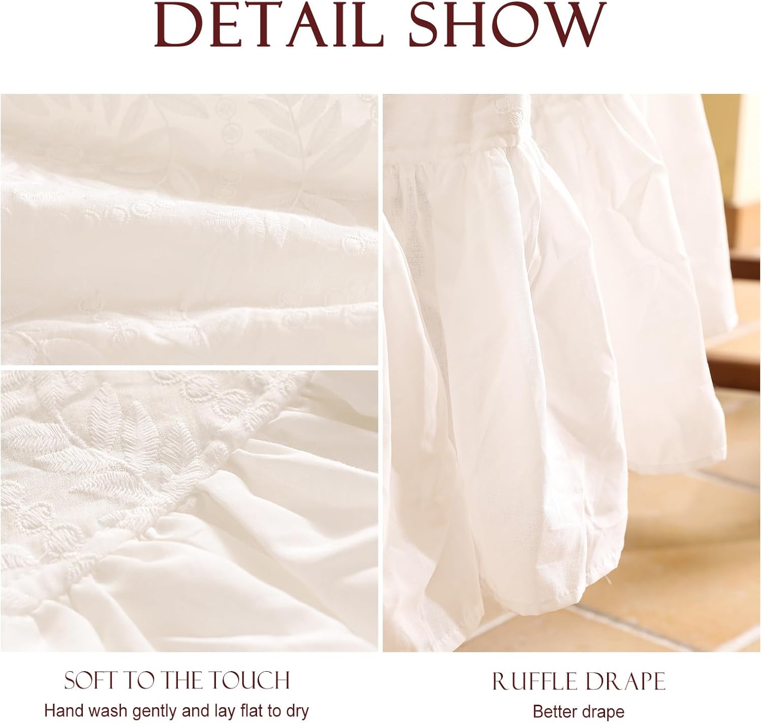 • Unique Design: Our lace tablecloths are designed with 100% cotton and feature double pleated ruffles and fine craftsmanship, reflecting the vintage shabby chic style.