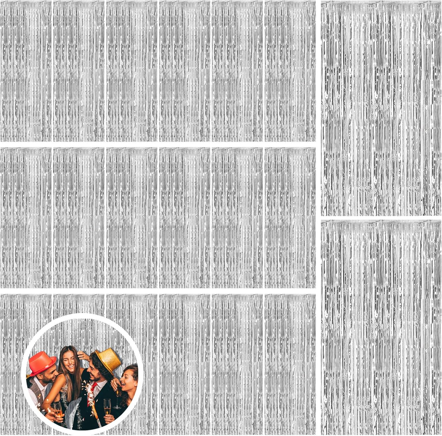 20 Pack Silver Backdrop Curtain Party Decorations Foil Fringe Backdrop Silver Tinsel Streamers Birthday Bachelorette New Year Christmas Wedding Baby Shower Disco Party Decorations