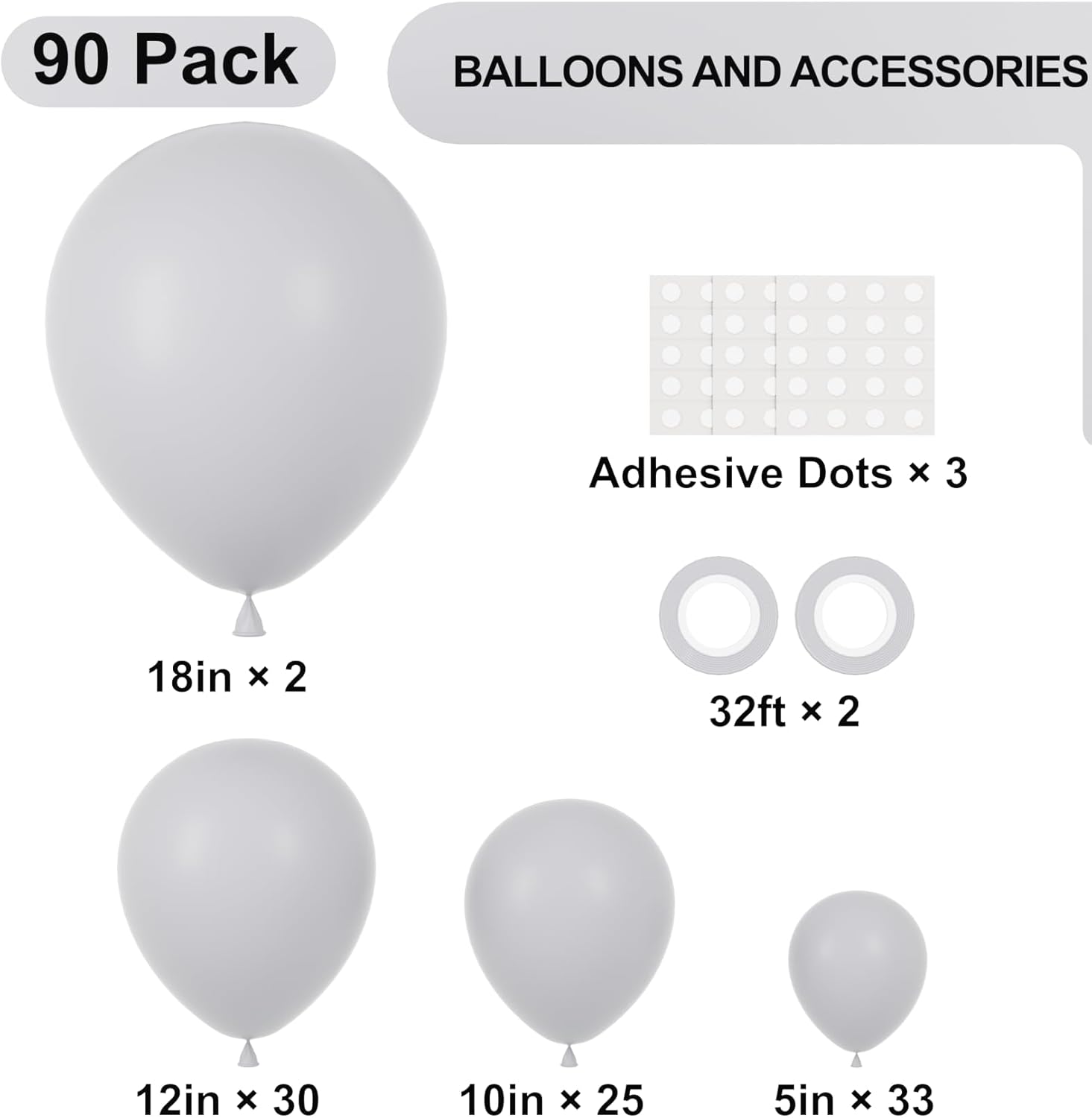 90pack Gray Balloons Different Size 18/12/10/5 Inch Pastel Grey Balloon Garland Arch Kit for Graduation, Wedding, Birthday, Gender Reveal, Baby Shower, Bridal Shower Decorations