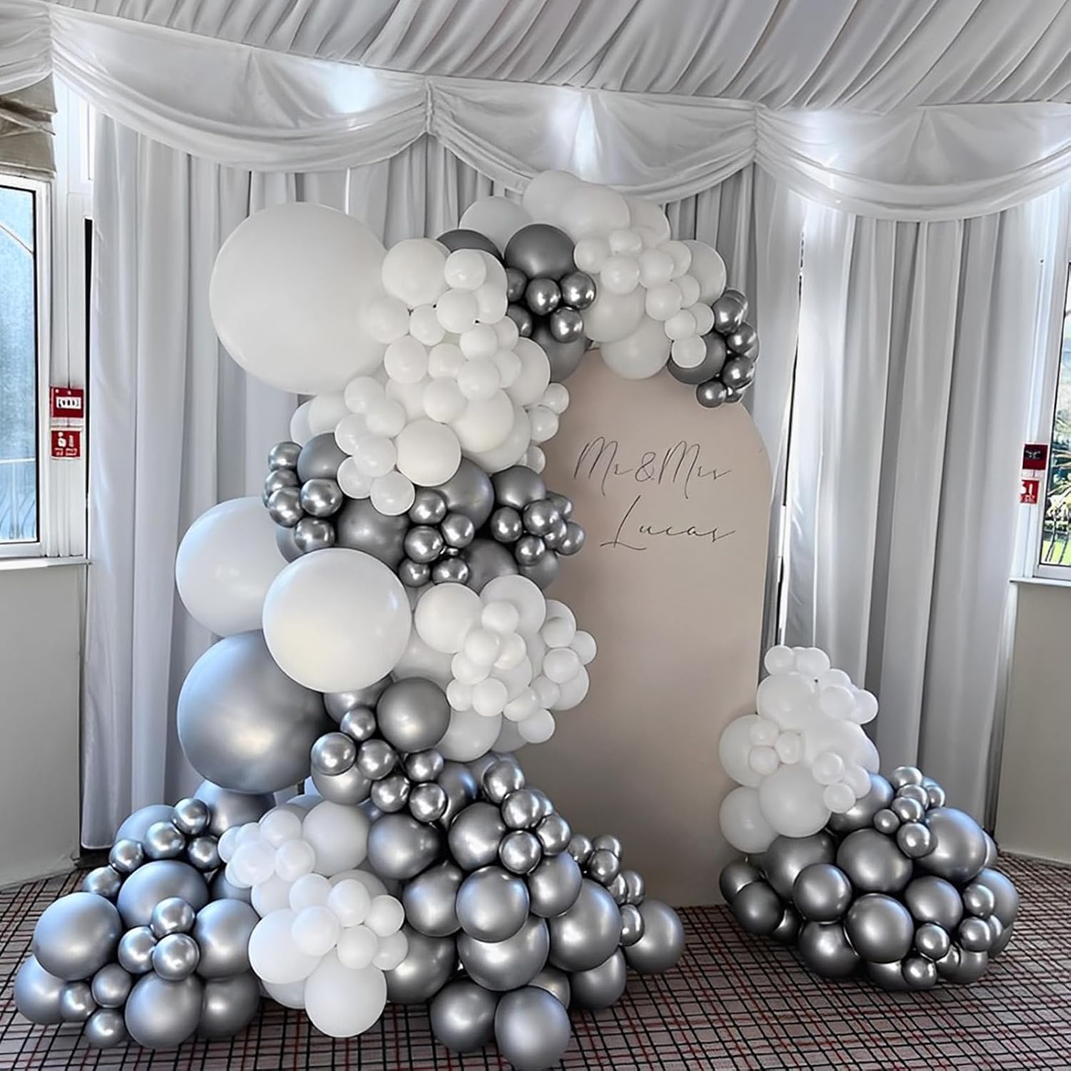 • Various Sizes: Carefully designed with 4 different sizes silver latex balloons : 18inch, 12inch, 10inch, and 5inch, ensuring you have more flexibility in decorations. From creating splendid silver balloon arch to crafting exquisite balloon backdrop, make your silver balloon garland arch kit look more layered, your creativity knows no bounds