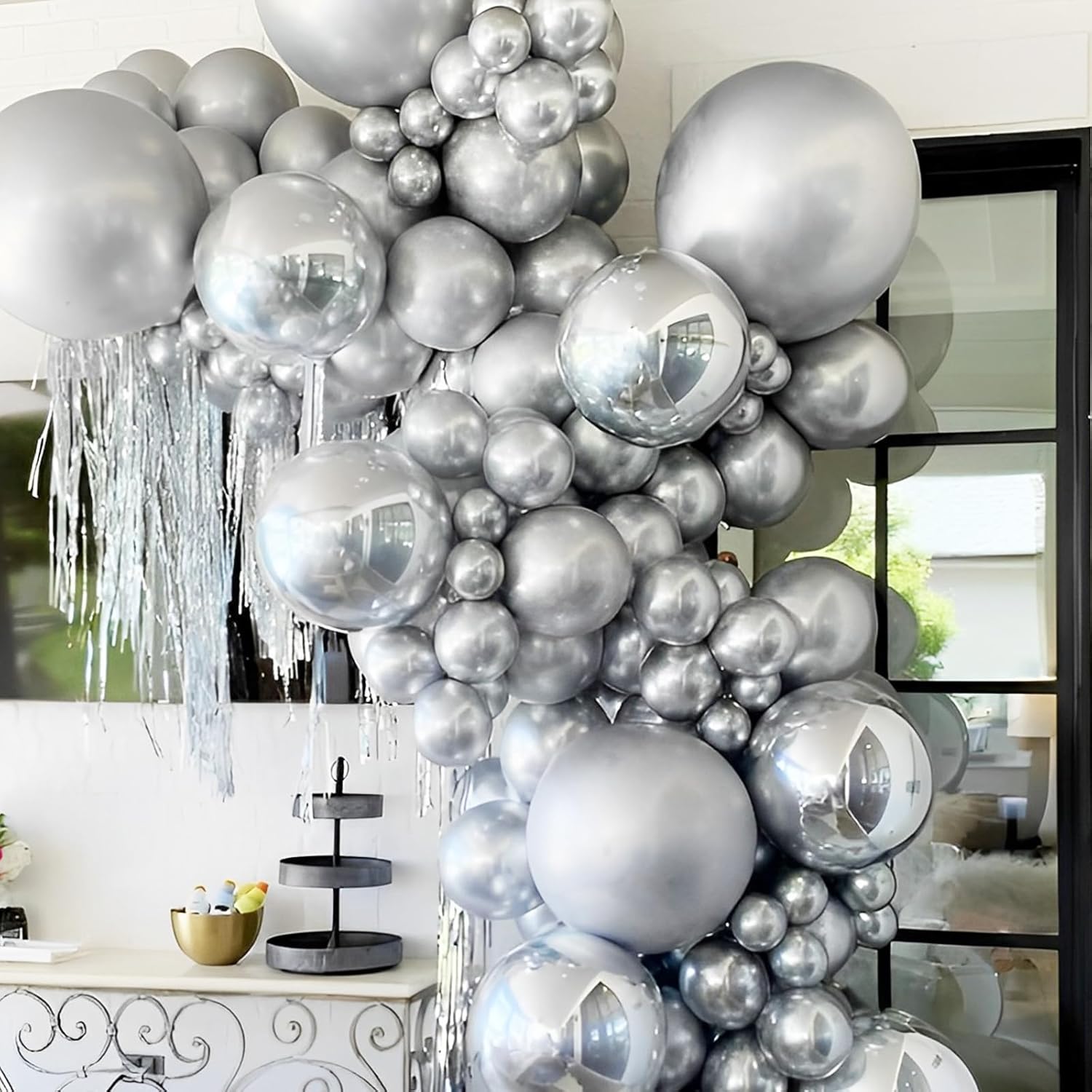 90pack Metallic Silver Balloons Different Size 18/12/10/5 Inch Chrome Silver Balloon Garland Arch Kit for Graduation, Wedding, Birthday, New Year, Baby Shower Decorations