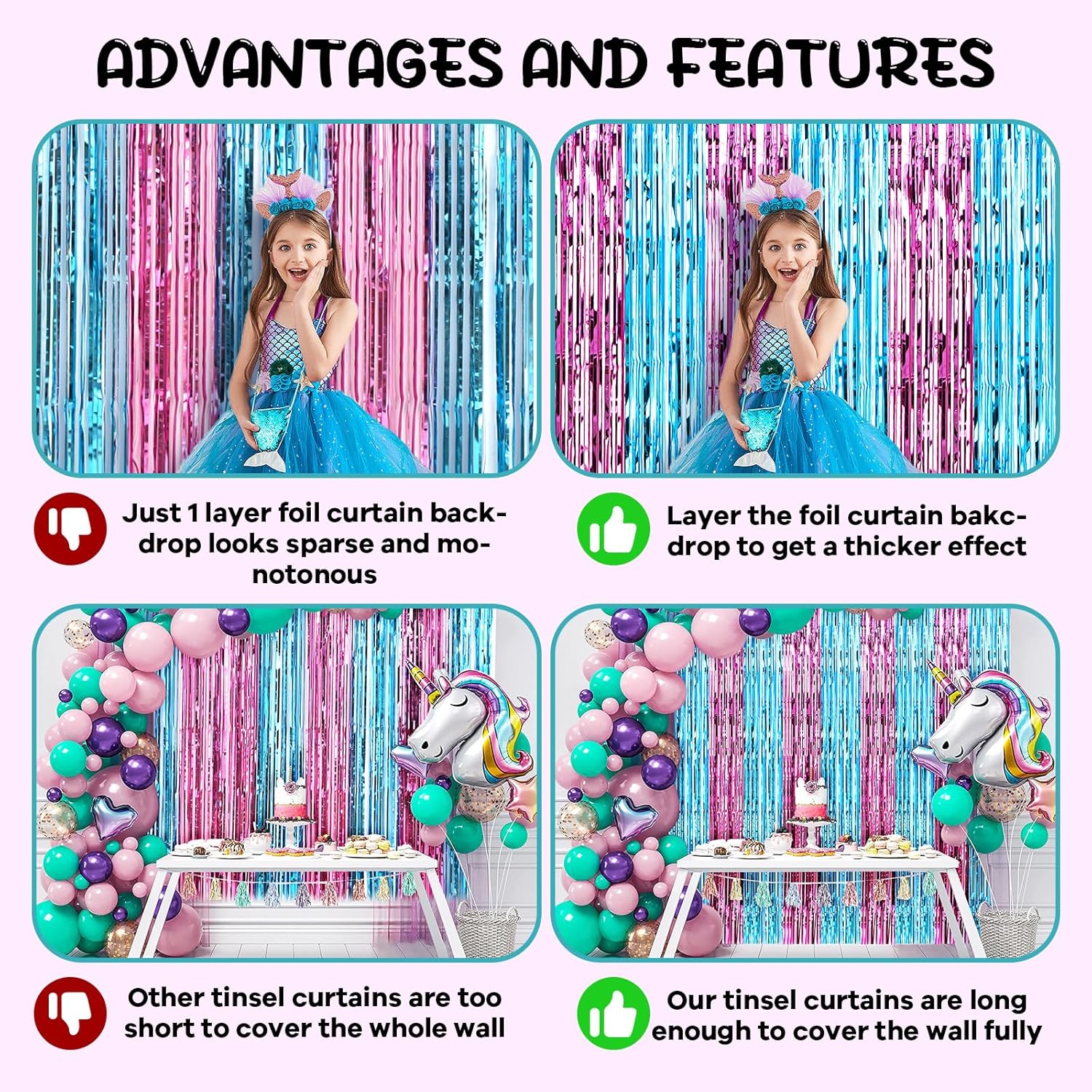 • Eye-Catching Design: These tinsel backdrops boast vibrant colors and a shimmering effect that reflects light beautifully. Your friends will be mesmerized by the captivating atmosphere these curtains create
