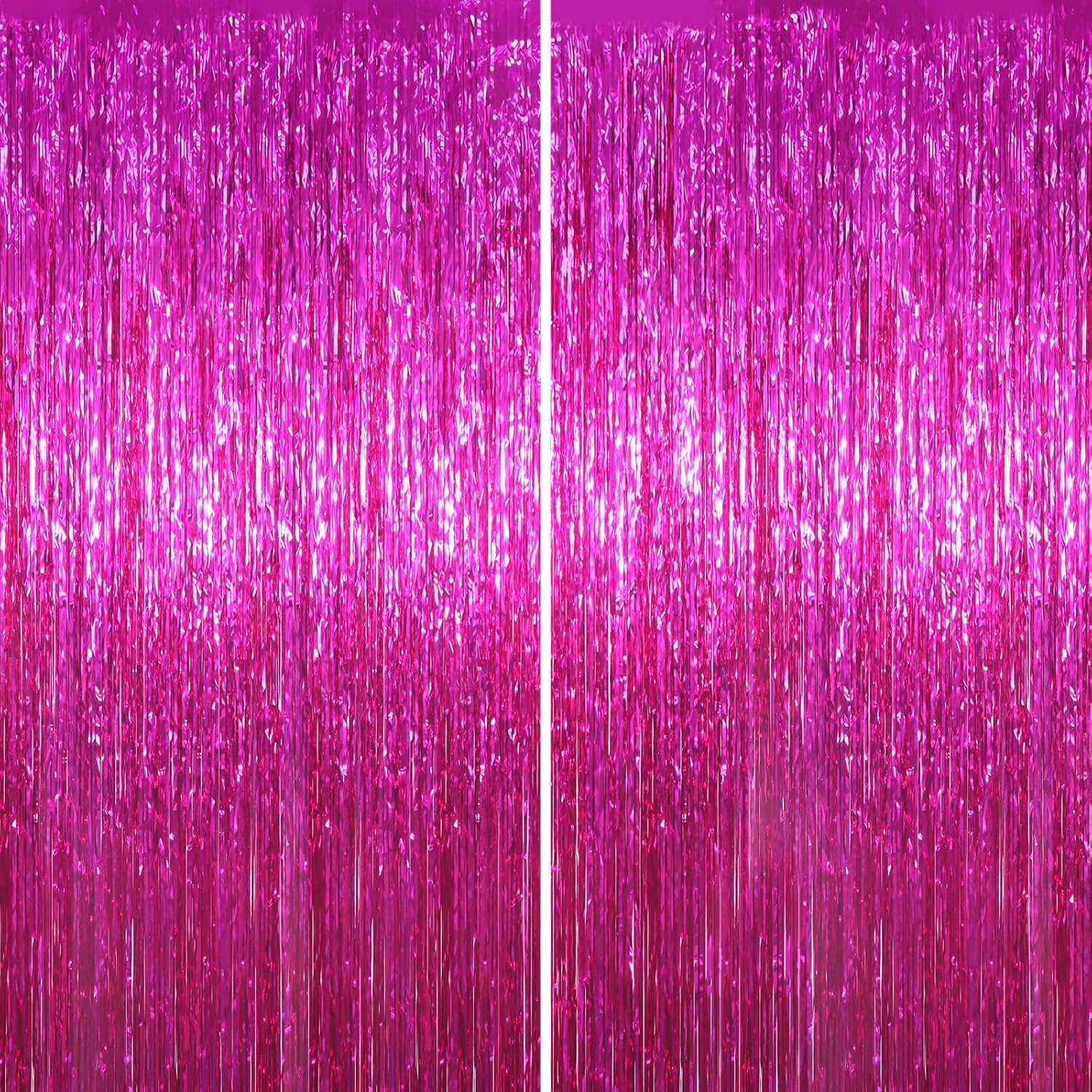 2 Pack Pink Foil Fringe Backdrop Curtains, Tinsel Streamers Birthday Party Decorations, Fringe Backdrop for Graduation, Baby Shower, Gender Reveal, Disco Party