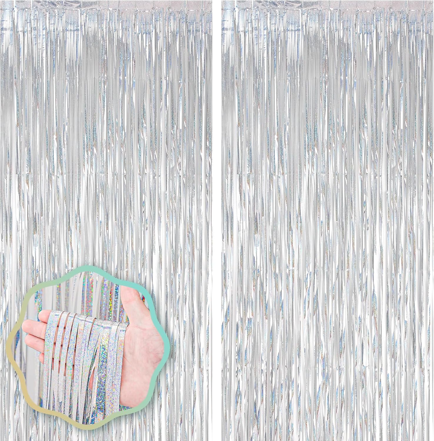 2 Pack Laser Silver Foil Fringe Backdrop Curtains, Tinsel Streamers Birthday Party Decorations, Fringe Backdrop for Graduation, Baby Shower, Gender Reveal, Disco Party