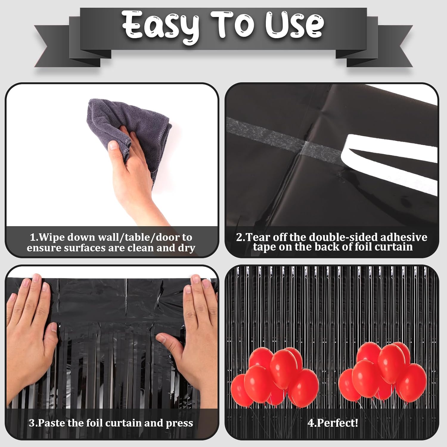 • Premium Material: This black foil curtain backdrop is made of stable tinsel, non-fading, stay shiny and reusable. Unfold it and then enjoy your glittering party