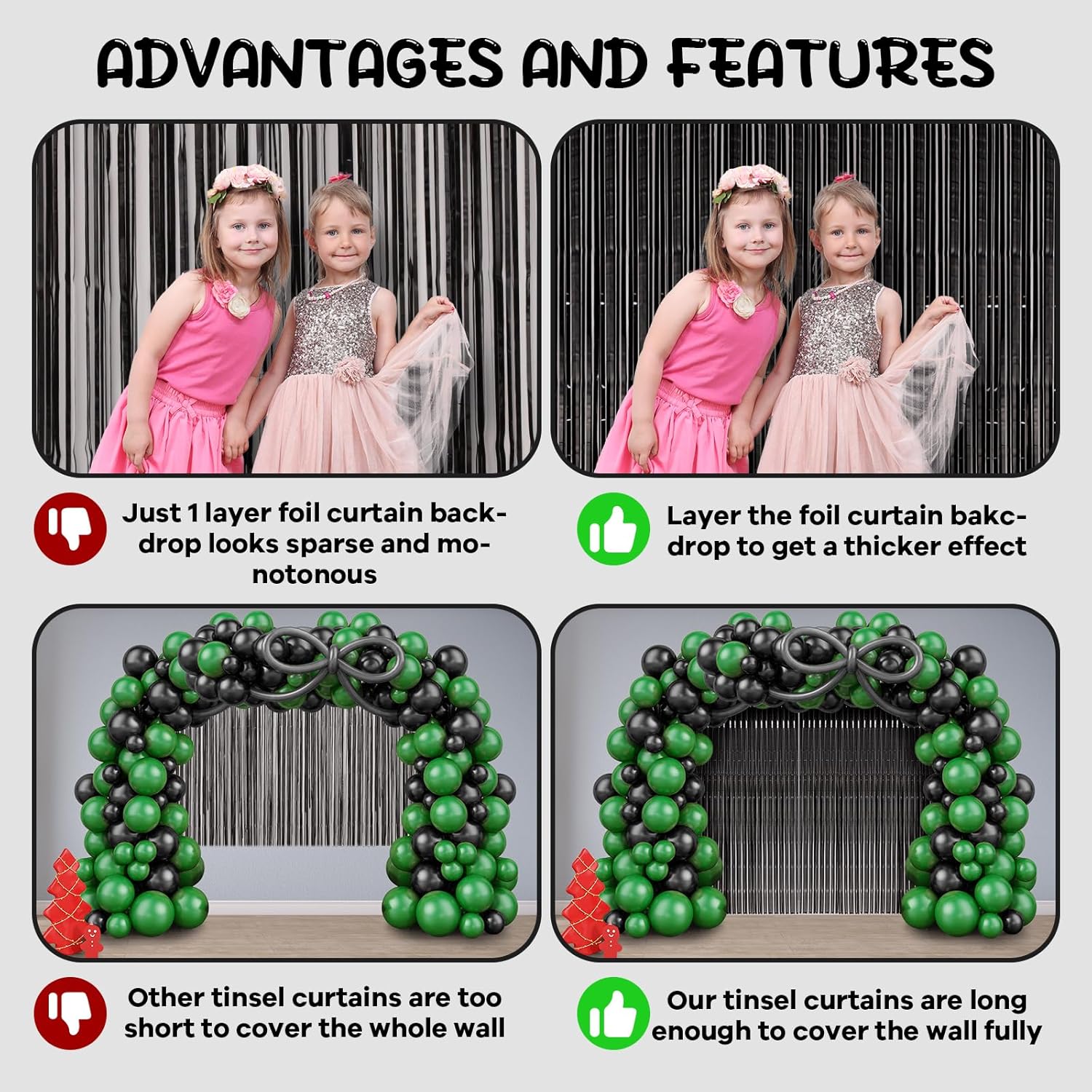 • Eye-Catching Design: These tinsel backdrops boast vibrant colors and a shimmering effect that reflects light beautifully. Your friends will be mesmerized by the captivating atmosphere these curtains create