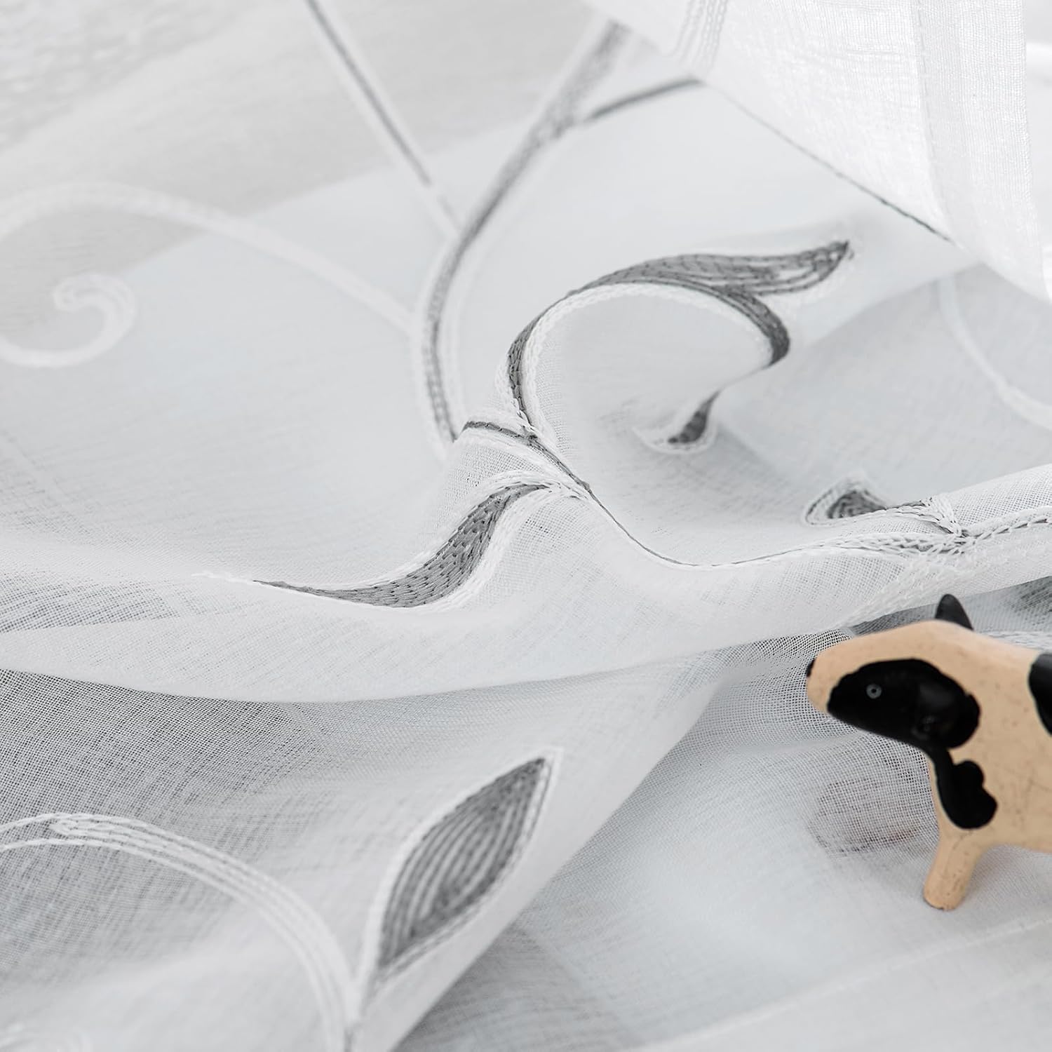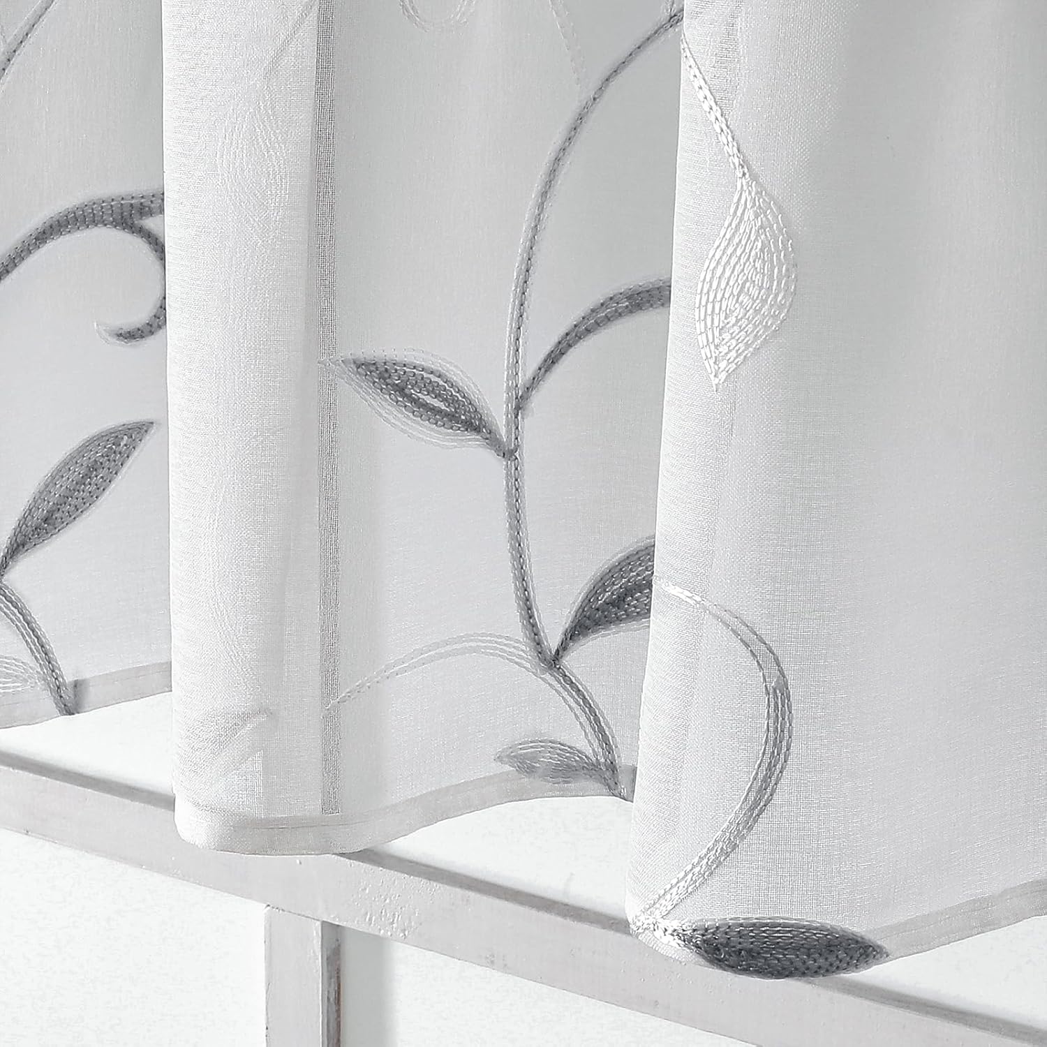 VISIONTEX White Sheer Voile Curtains, Decorative Leaves Embroidery Faux Linen Rod Pocket Window Drapes for Home Kitchen, Living Room and Bedroom 26 x 36 Inch, Set of 2 Curtain Panels