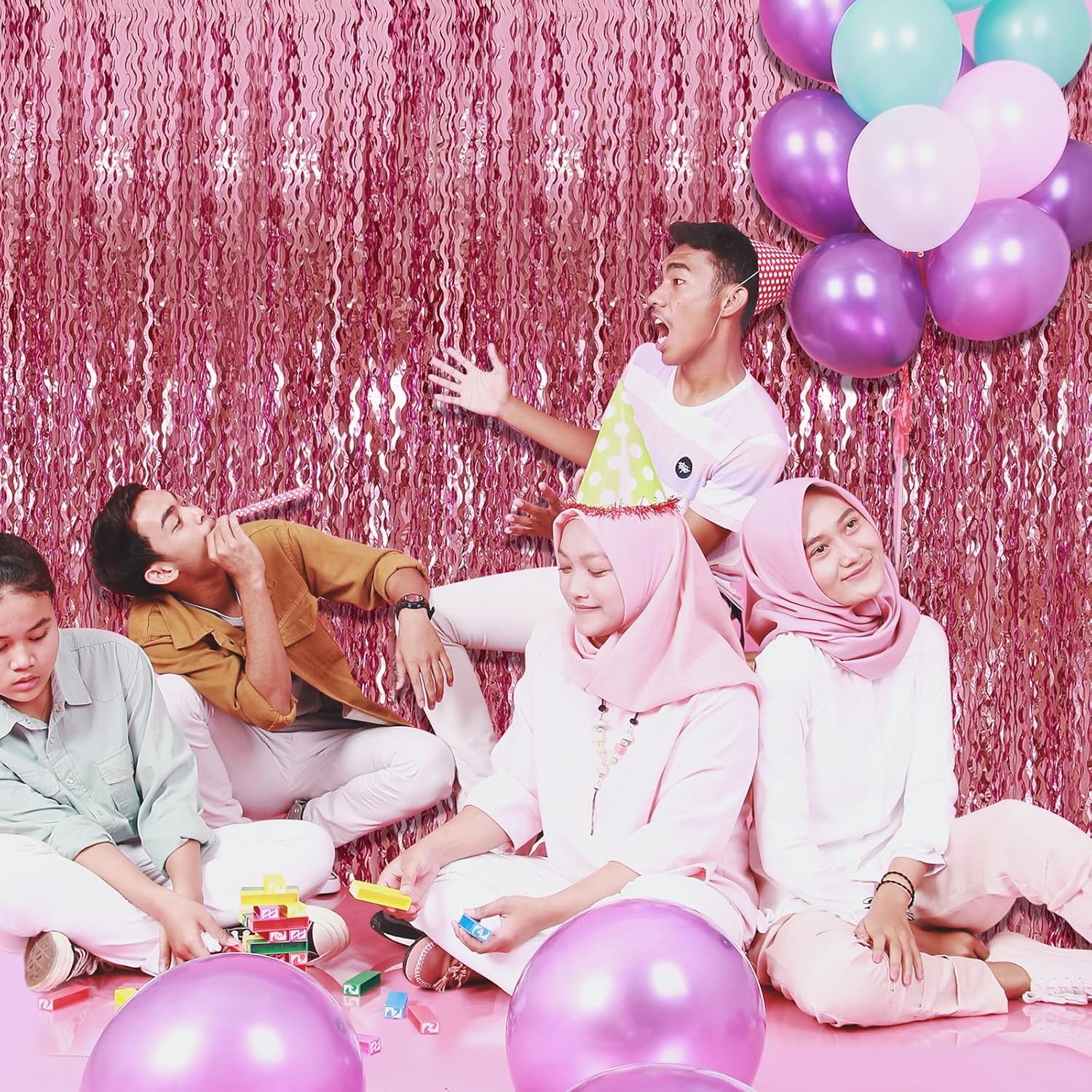 • Pink Photo Backdrop - The wavy foil fringe curtains with sparkle, a stunning decorative piece that will add a touch of glamour and elegance to your party decorations.
