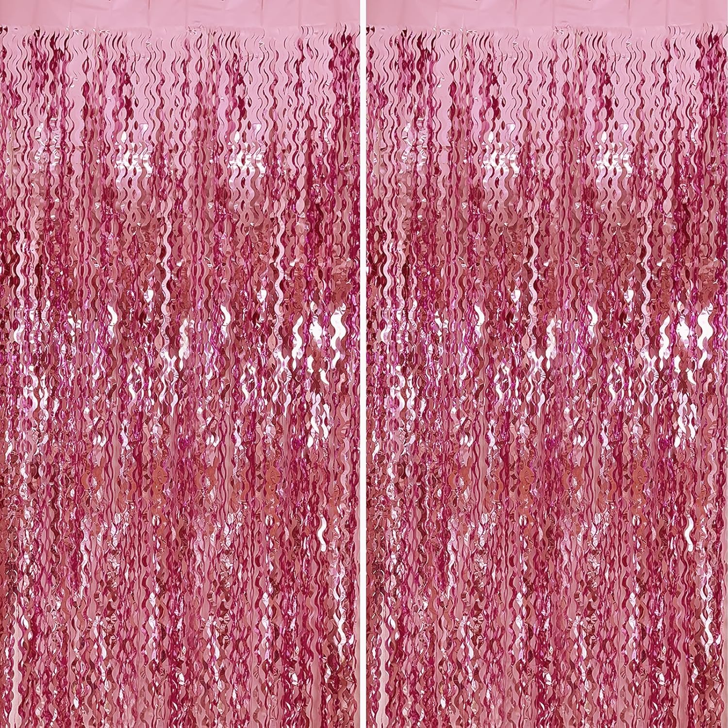 • Pink Photo Backdrop Curtains - The wavy foil fringe curtain with sparkle, a stunning decorative piece that will add a touch of glamour and elegance to your party decorations.