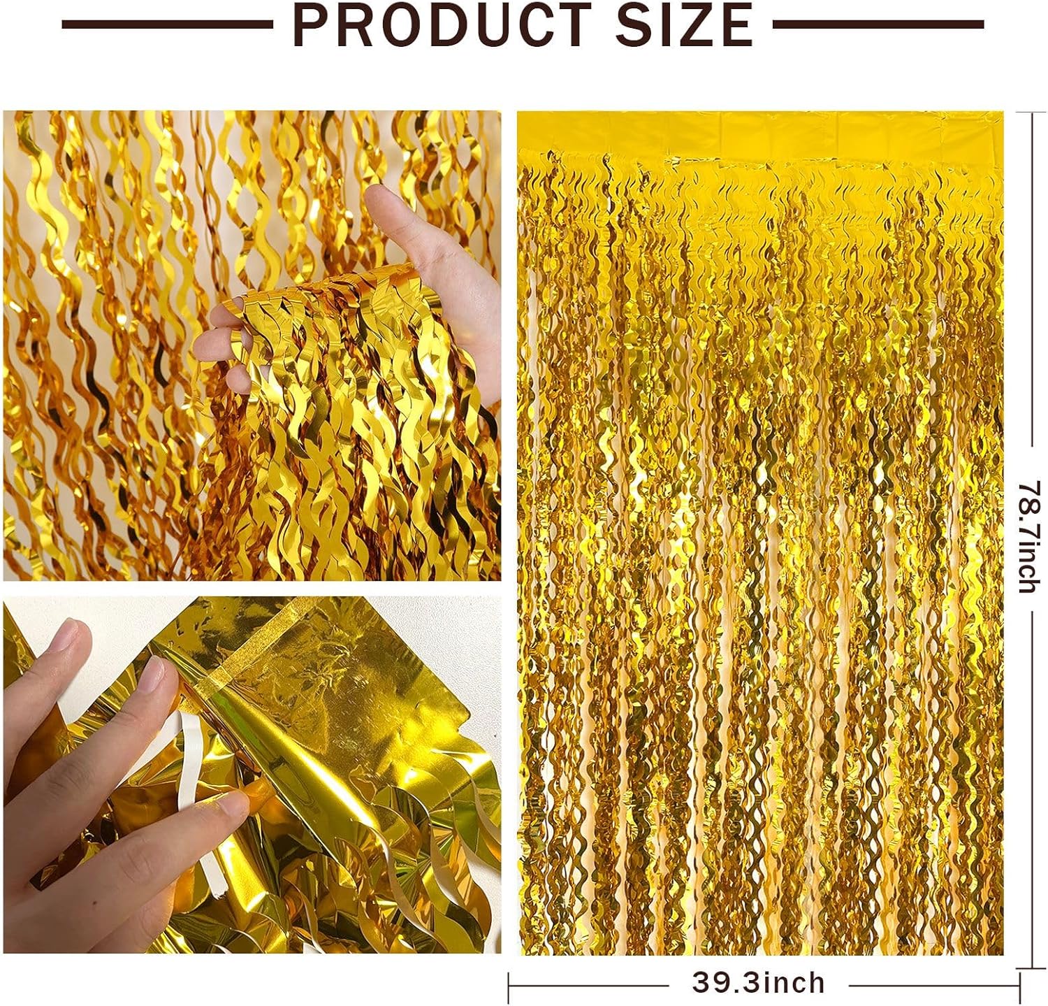 • 【Gold Photo Backdrop】The wavy foil fringe curtain with sparkle, a stunning decorative piece that will add a touch of glamour and elegance to your party decorations.