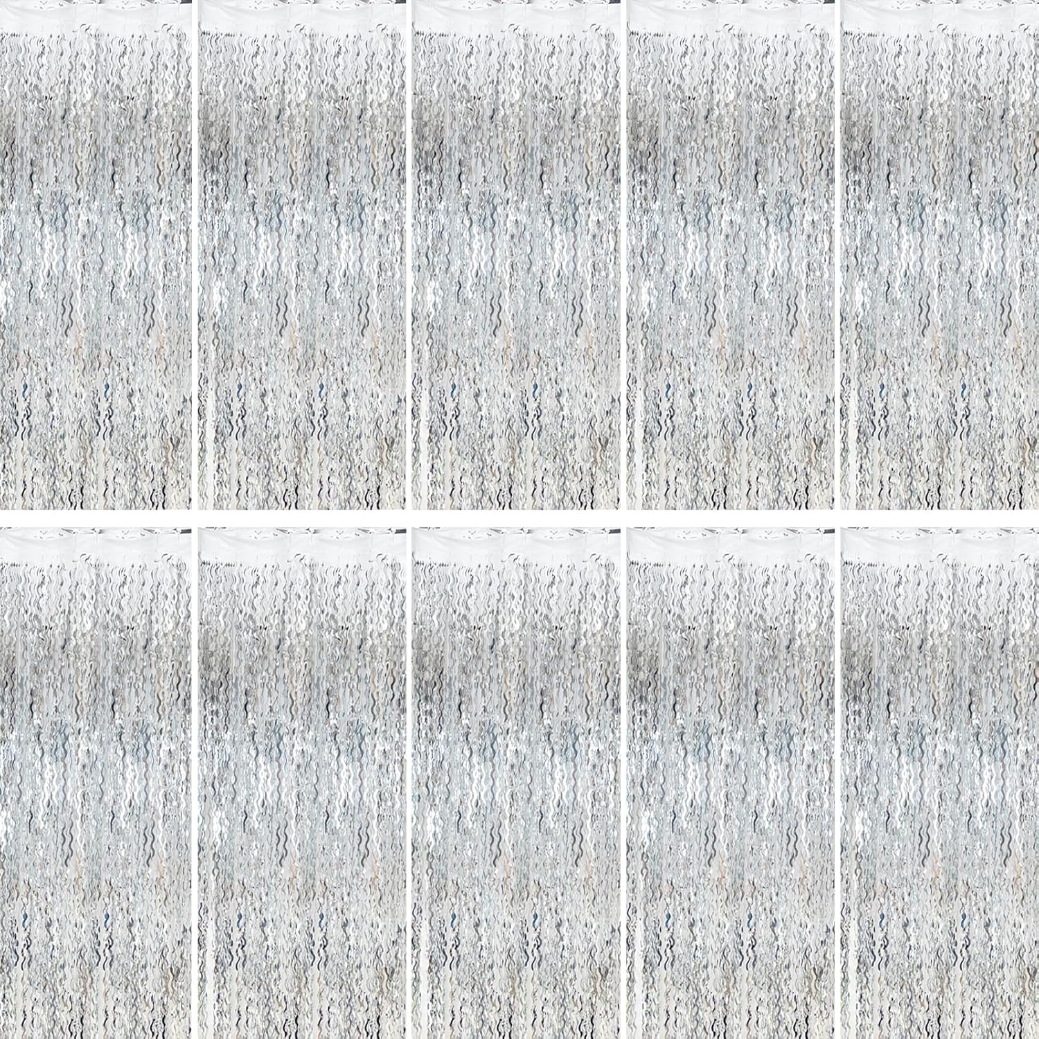 Silver Birthday Party Decorations 10pcs Silver Streamers Foil Fringe Backdrop Curtains Photo Booth Props Prom Decorations for Bachelorette, Engagement, Disco Party, Graduation,Wedding, Anniversary