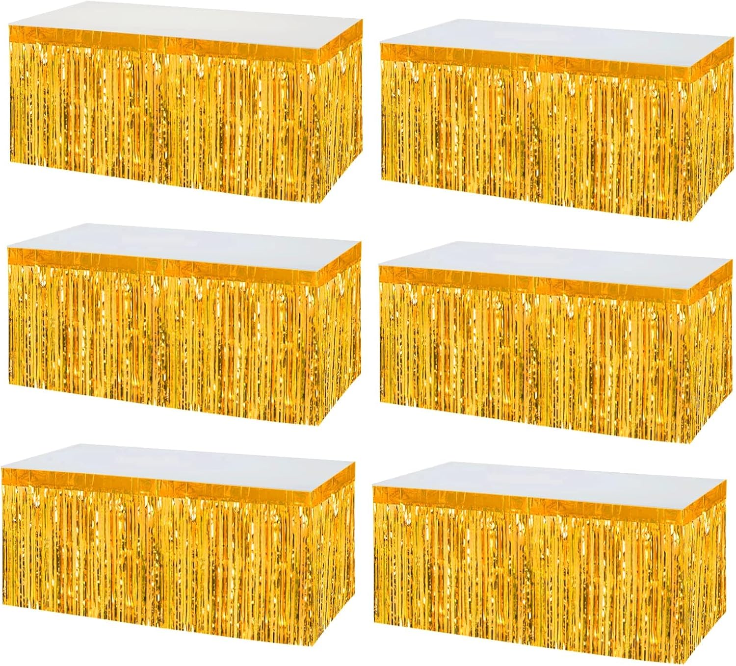 6 Pack 29x108 Inch Metallic Foil Fringe Tinsel Table Skirts Banner for Rectangle Tables Streamer Garland Curtains Backdrop for Wedding, Birthday, Parade Floats, Christmas Party Decoration(New Gold)
