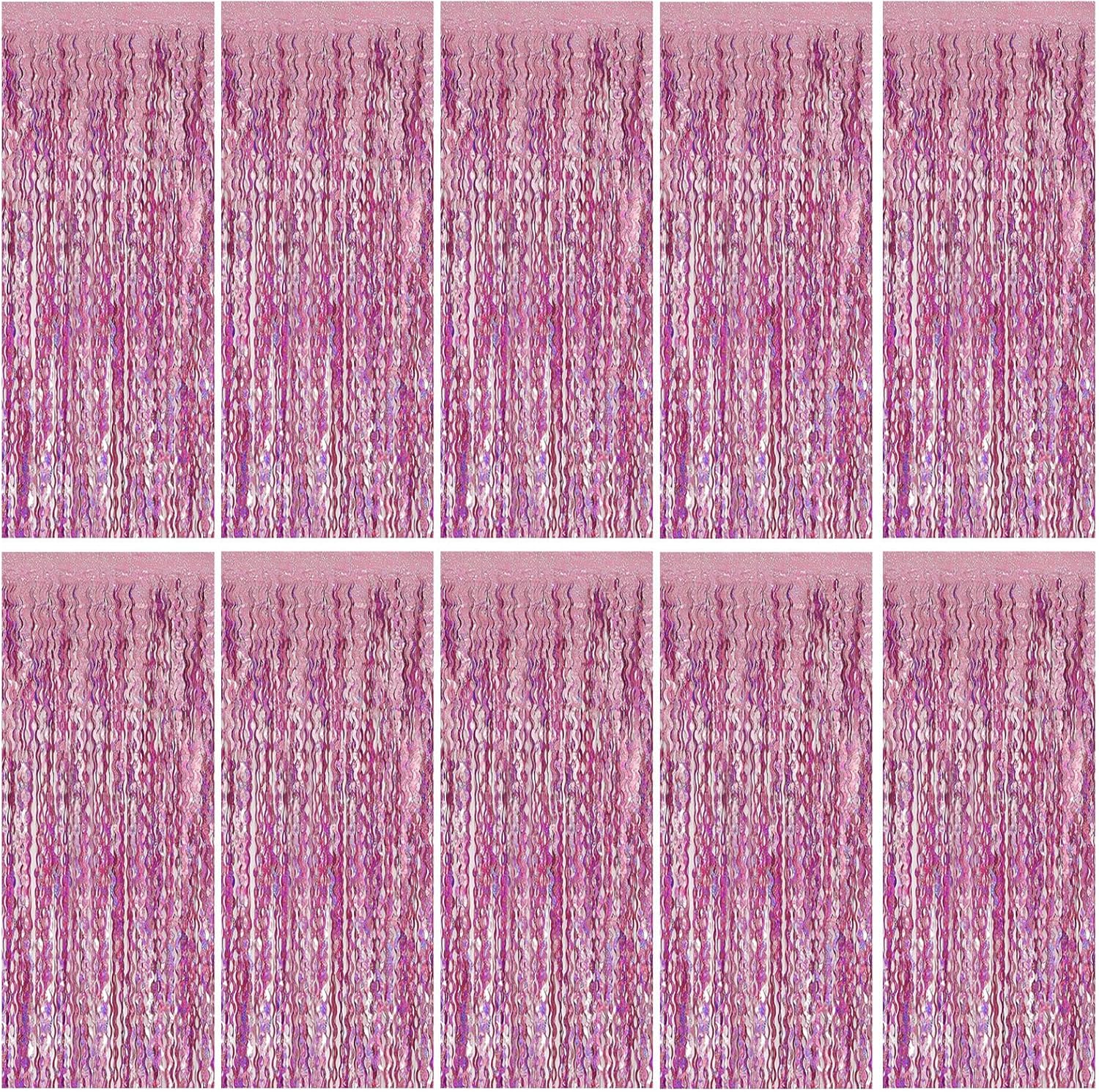 • Pink Streamers Backdrop:10Pack, each curtains size is 3.28 ft x 6.56 ft, enough length foil fringe backdrops are perfect for the door, wall and table,feel free to cut to any length you want.