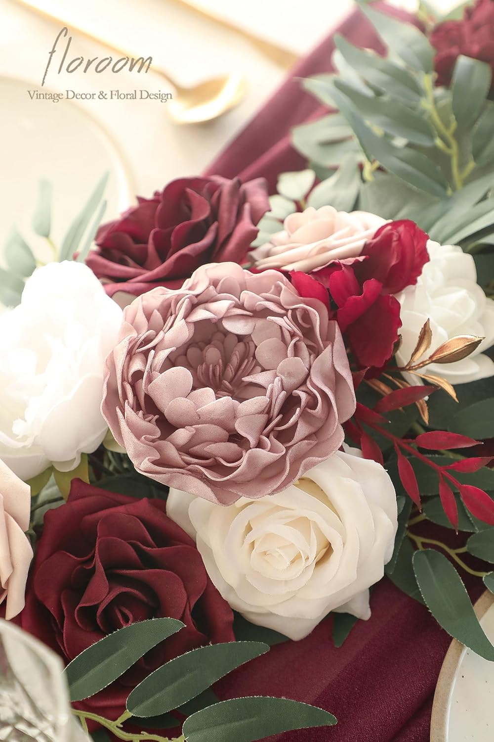 • ❤️Lifelike Greenery: Premium faux silk leaves, foam flowers in burgundy and white to match the rustic burgundy theme, with rose as the main flower, embellished with peony, eucalyptus, and willow leaves, create a layered and romantic sense.