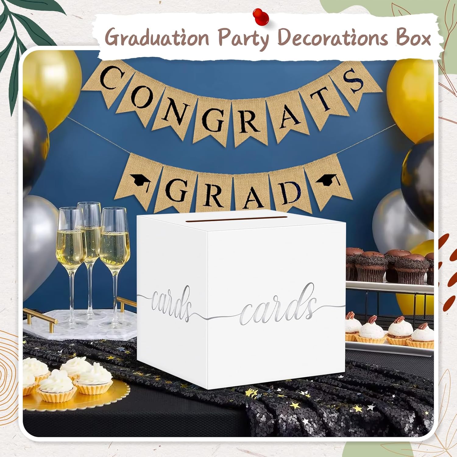 QIKSION White Wedding Card Box, Silver Foil Gift Card Box for Party, Wedding Reception, Graduation, Birthday, Baby Shower, Raffle