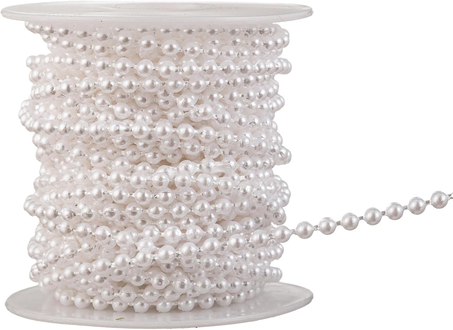 3mm Millet Beads Crafts Faux Pearl Beads Garland Pearl Bead Roll Strand of Pearls to Decorate Floral Centerpieces Wedding Party Favor Christmas Tree(33 Feet White)
