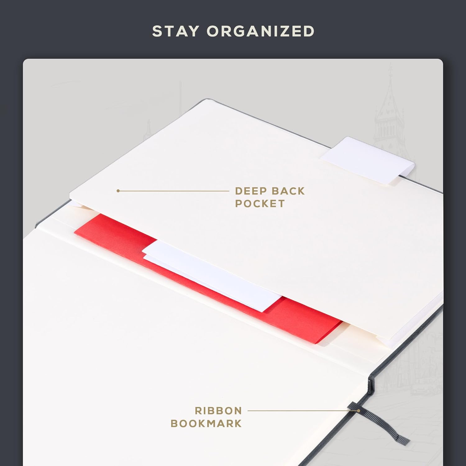 • Elegant & Durable Construction - Built to last with a robust vegan leather hardcover and thread-binding, this A4 large sketchbook combines timeless British-inspired design with lasting reliability for your artistic vision.
