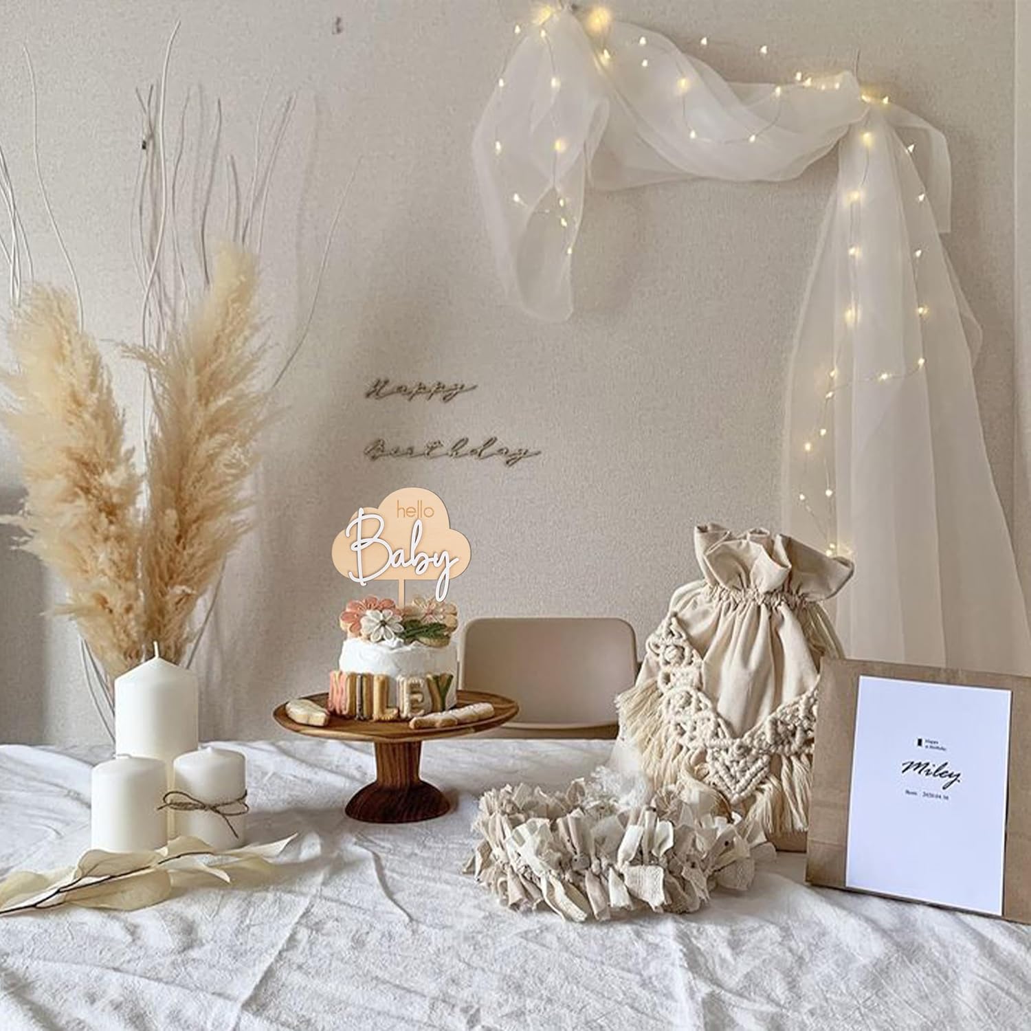 Hello Baby Wooden Cake Topper - Cloud Themed Baby Shower Party Cake Topper,Gender Reveal Party Decoration