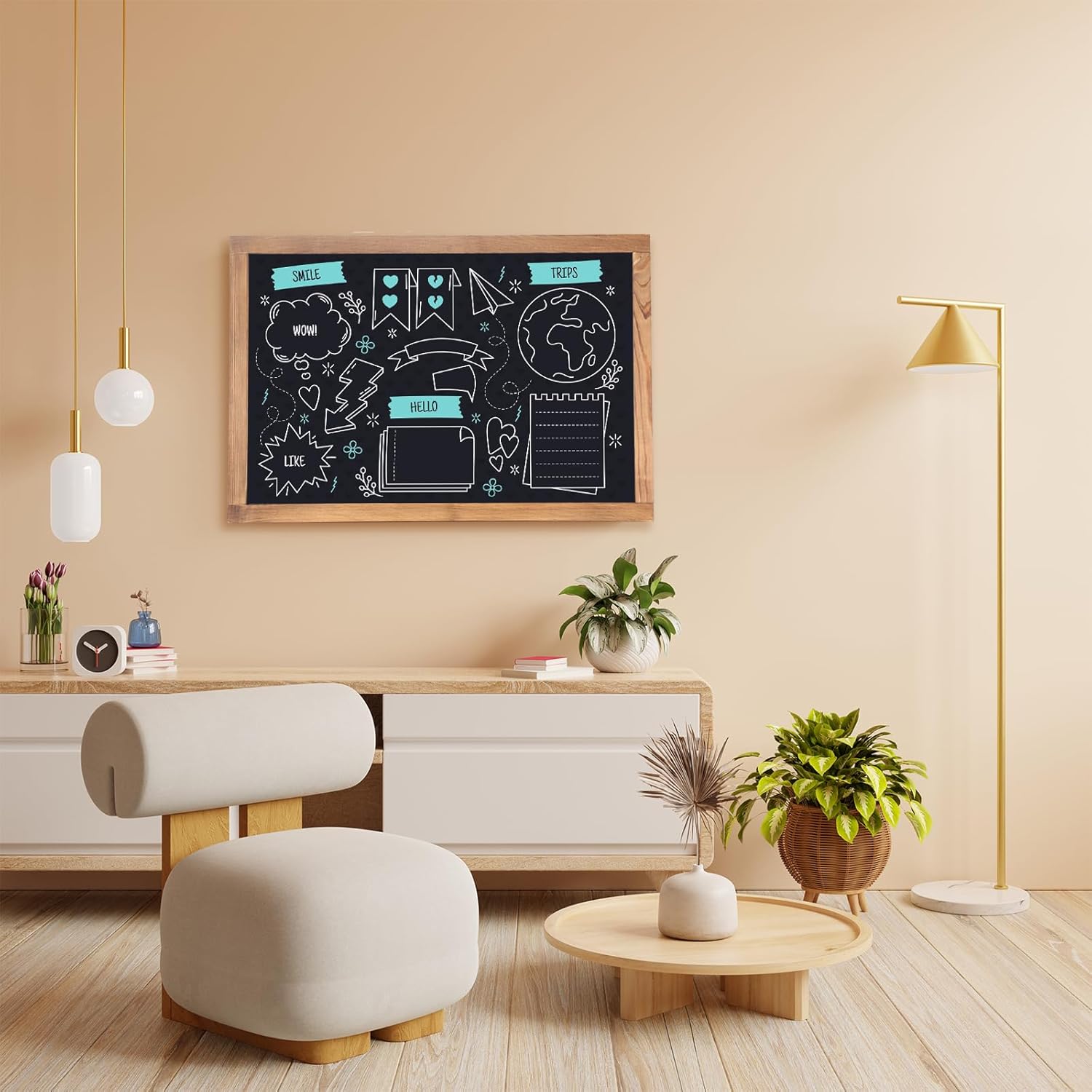 • WOOD FRAME: Rustic chalkboard with wood texture frame, smooth surface, durable.