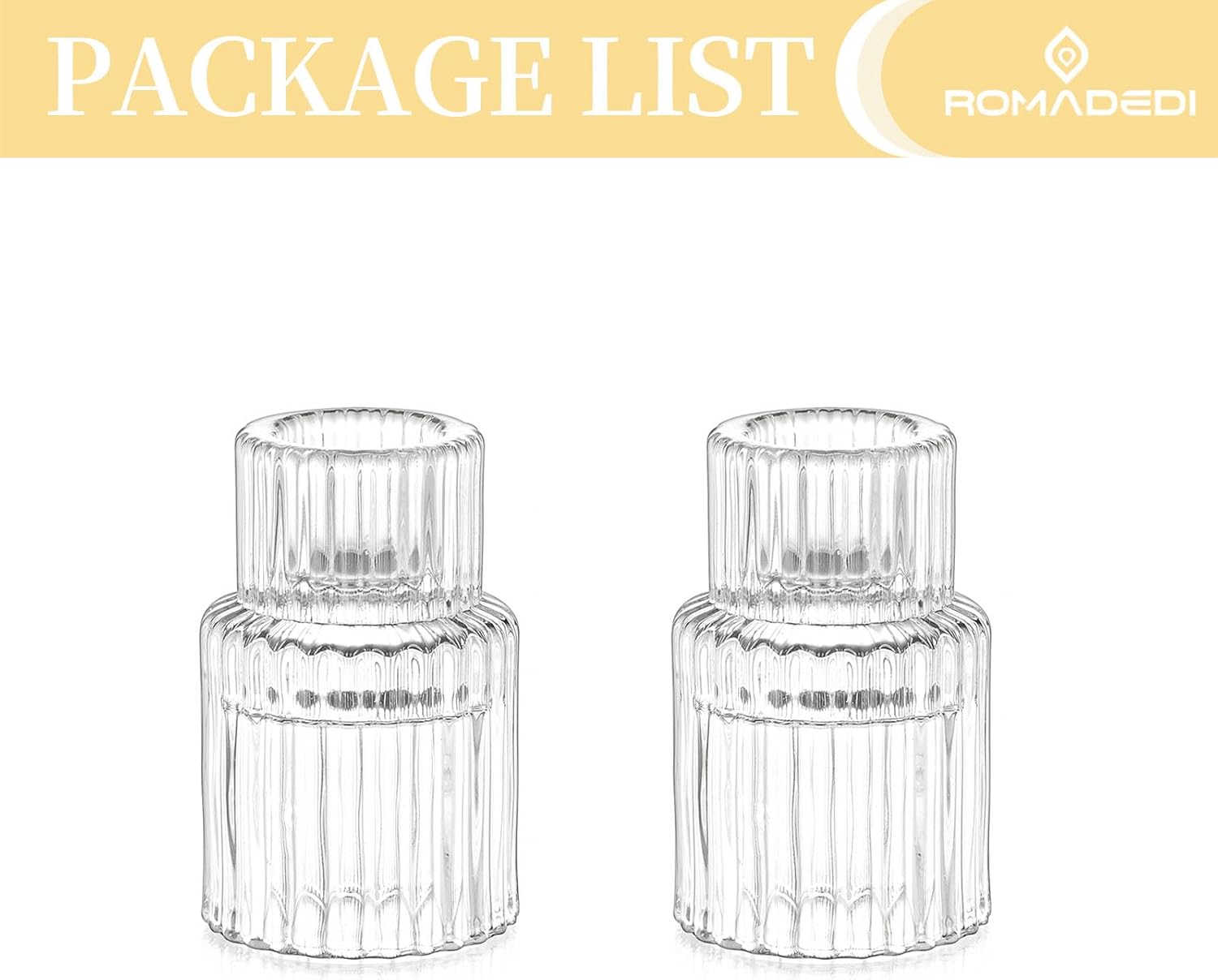 Romadedi Glass Candle Holder for Candlestick - 2Pcs Clear Small Tapered Candle Holders Wedding Decor Table Centerpiece for Candle Sticks Christmas Party Table Living Room Dinner Advent