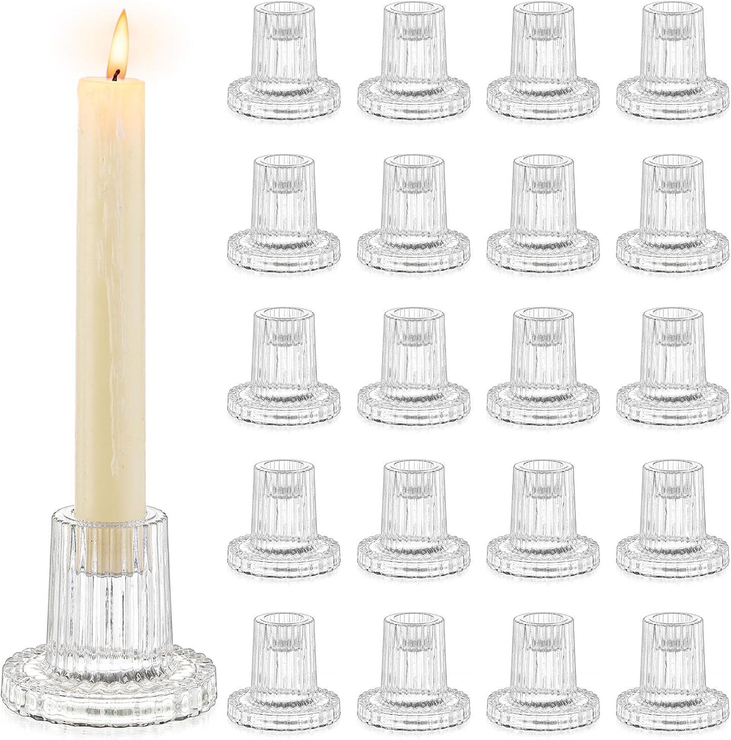 Romadedi Glass Candle Holder for Candlestick - 20Pcs Clear Tapered Bulk Wedding Decor Table Centerpiece for Candle Sticks Christmas Party Living Room Dinner Advent Decoration