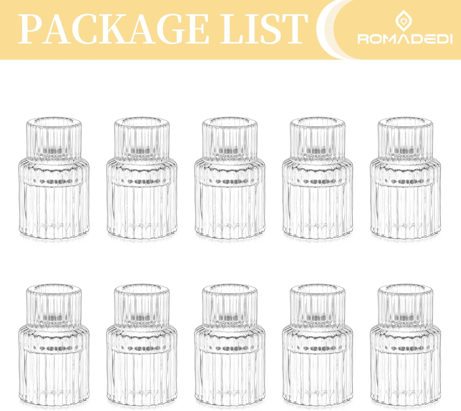 Romadedi Glass Candle Holder for Candlestick - 10Pcs Clear Small Tapered Candle Holder Wedding Decor Table Centerpiece Bulk for Candle Sticks Christmas Party Living Room Dinner Advent