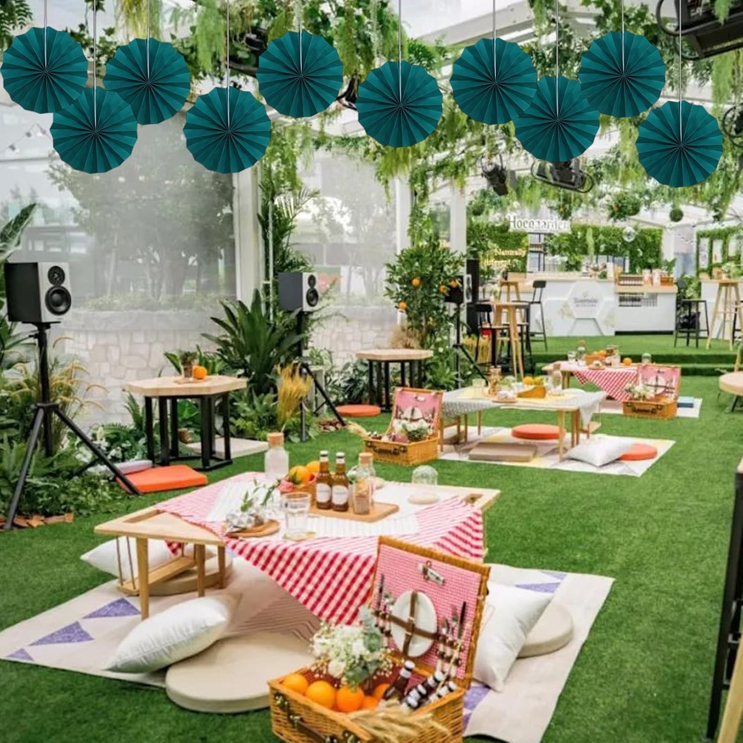 Green Birthday Decorations,DIY Green Paper Fans Hanging Decoration ,Party Supplies Party Fans 8in, Cactus Party Decorations,Wedding Graduation Events Accessories 30 Color DIY Set (Blackish Green)