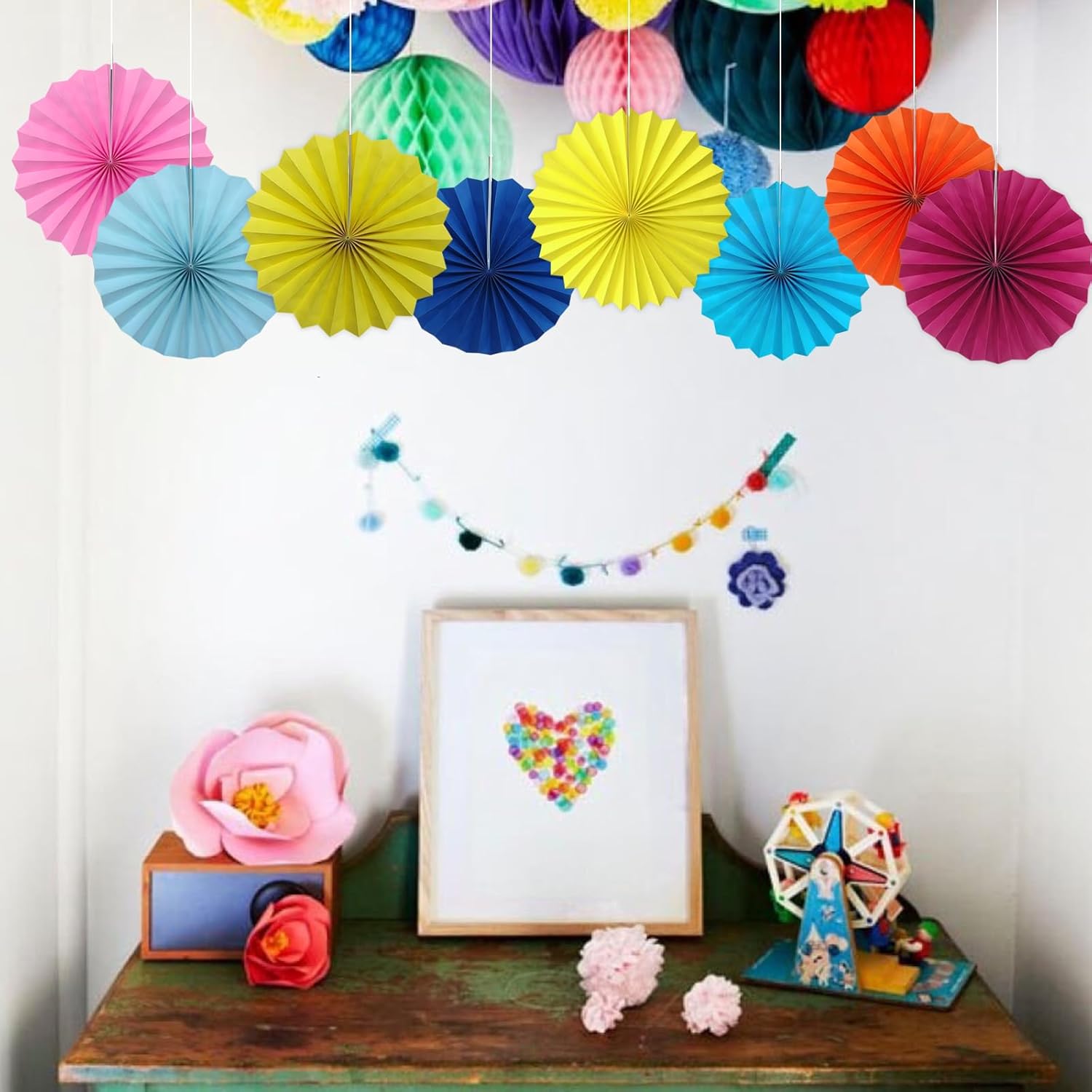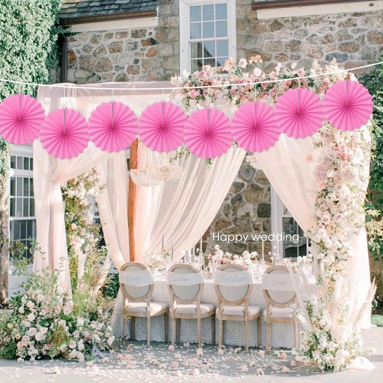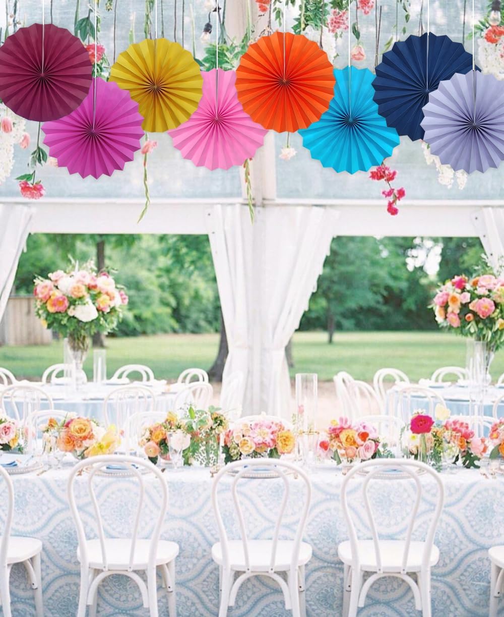 Red Hanging Paper Fans,Red Accessories Paper Decorations for Party,Valentines Day Decorations,Photo Booth Props Decor,12in Hanging Paper Fans 30 Color DIY Set (Magenta)