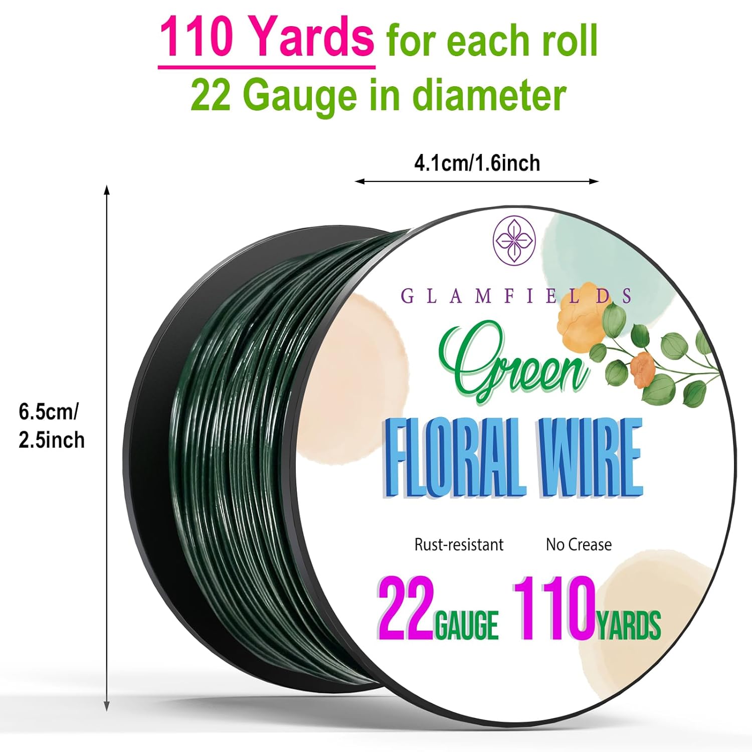 GLAMFIELDS 22 Gauge Floral Wire, 110 Yards Christmas Wire Wreath Wire Green Flexible Paddle Florist Wire for Flower, Crafts, Christmas Wreaths Tree, Wreath Frame, Garland, and Floral Arrangements