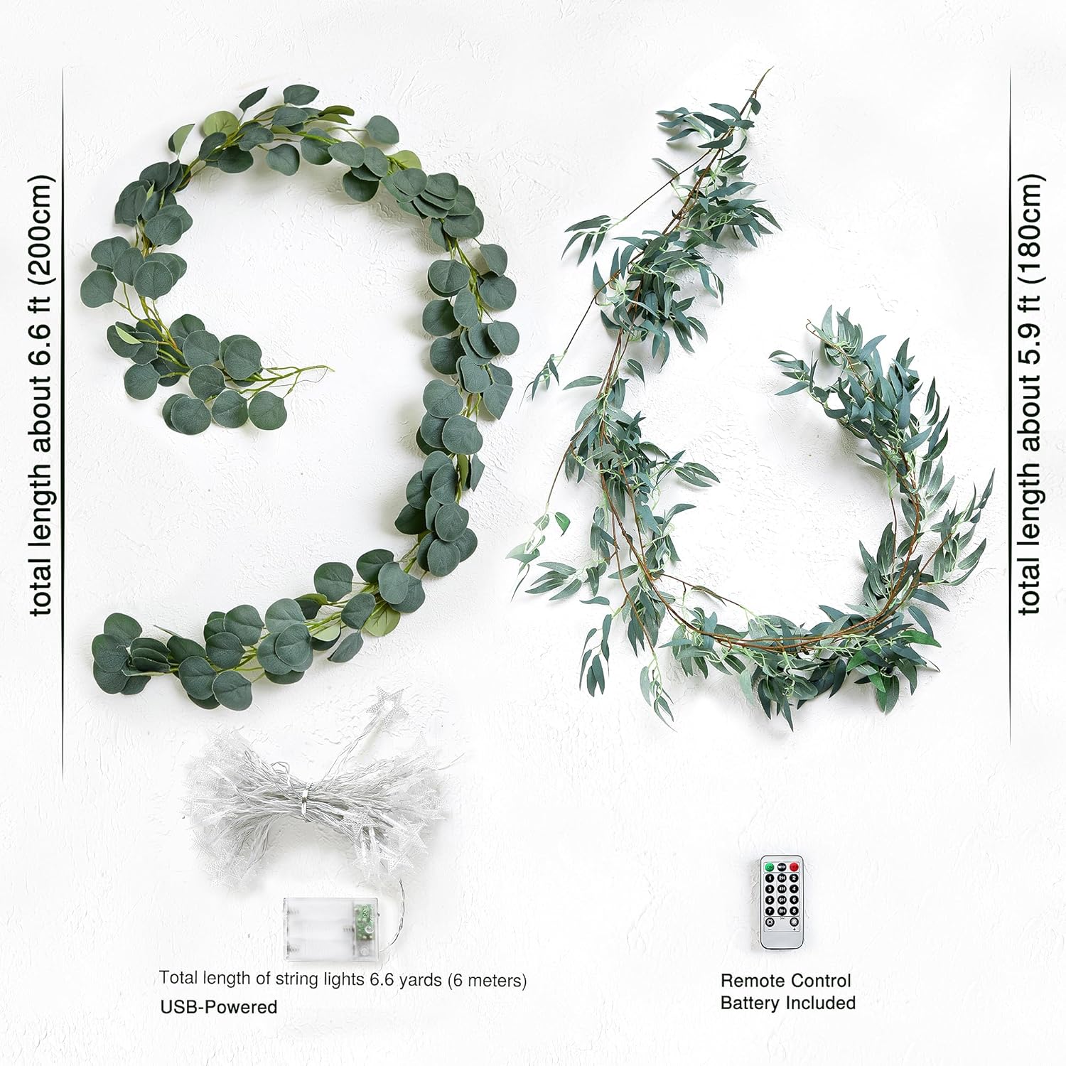 • Color : Willow and Eucalyptus Garlands With 33 Feet 80 Led Star String Lights (Usb)