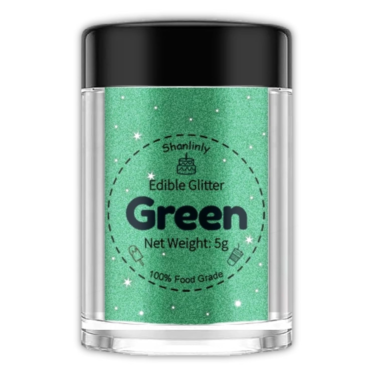 Shanlinly Green Edible Glitter for Cakes Drinks - Food Grade 5g Shimmer Luster Glitter Dust Edible Glimmer Powders for Strawberries, Sprinkle on Sparkle, Chocolate, Cookie, Cupcake, Cocktail, Vegan