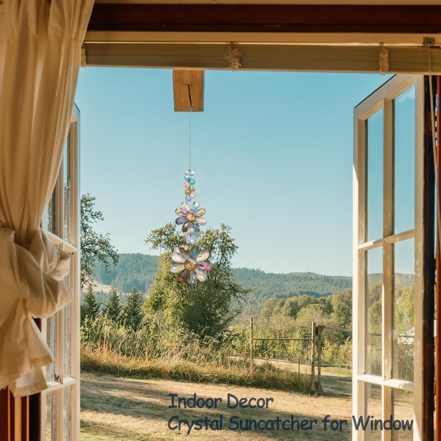 Crystal Flower Suncatcher Hanging Ornament, Rainbow Maker Window Sun Catcher Indoor Outdoor Patio Garden Decor (Deep Multicolor)