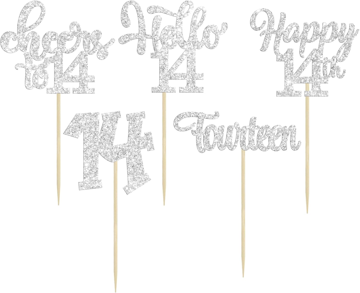 30Pcs 14th Birthday Cupcake Toppers Hello 14 Cupcake Picks Fourteen Cheers to 14 Years Old Cake Decorations for 14th Birthday Anniversary Party Supplies Silver Glitter