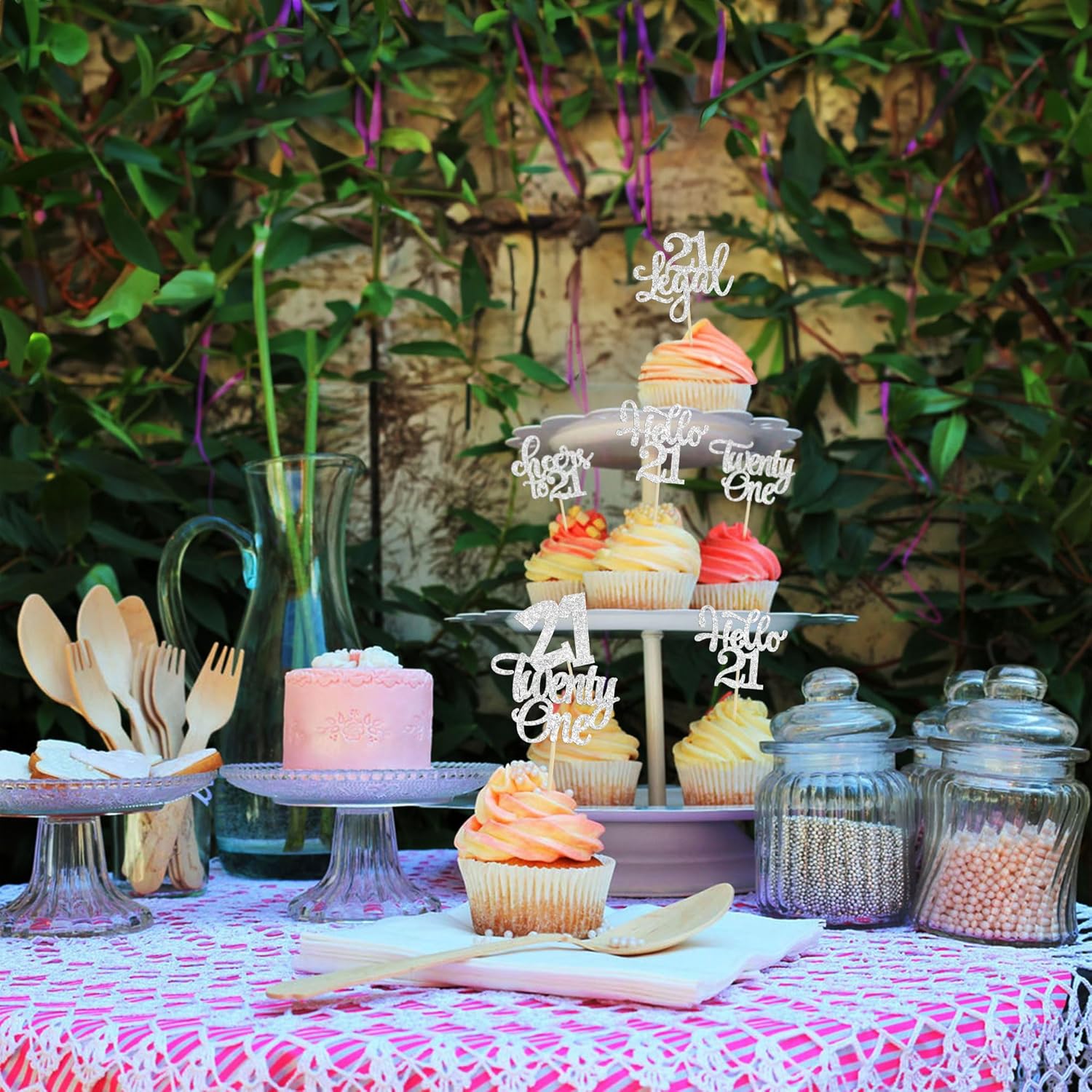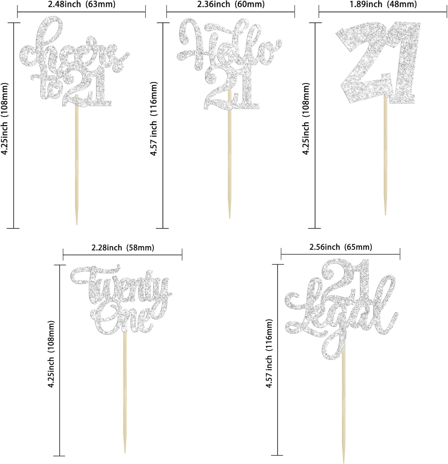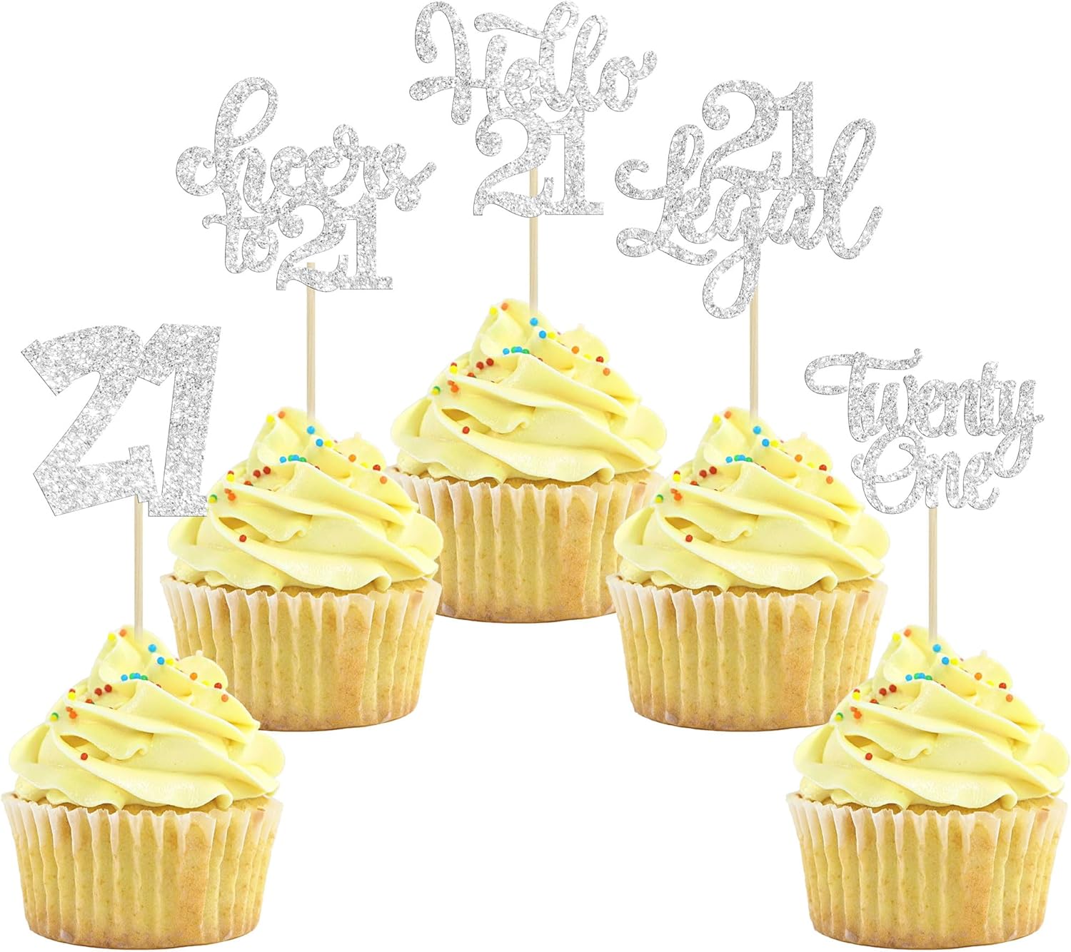 30pcs 21st Birthday Cupcake Toppers - Twenty One Legal 21st Cupcake Picks - Cheers to 21 Years Old - Silver Glitter Cake Decorations